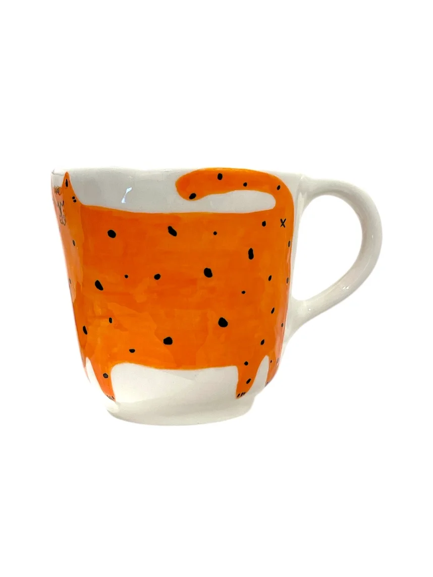 Чашка для чая ручной работы Кот оранжевая, керамика, 250 мл