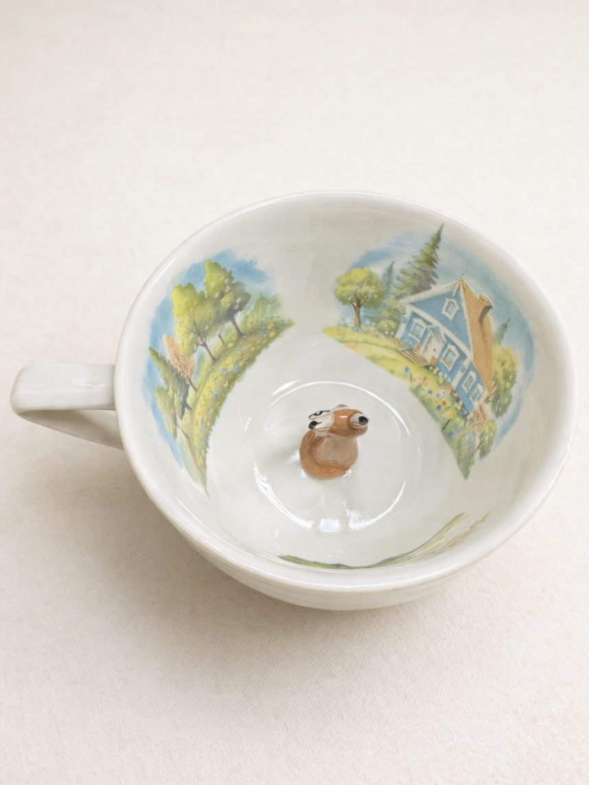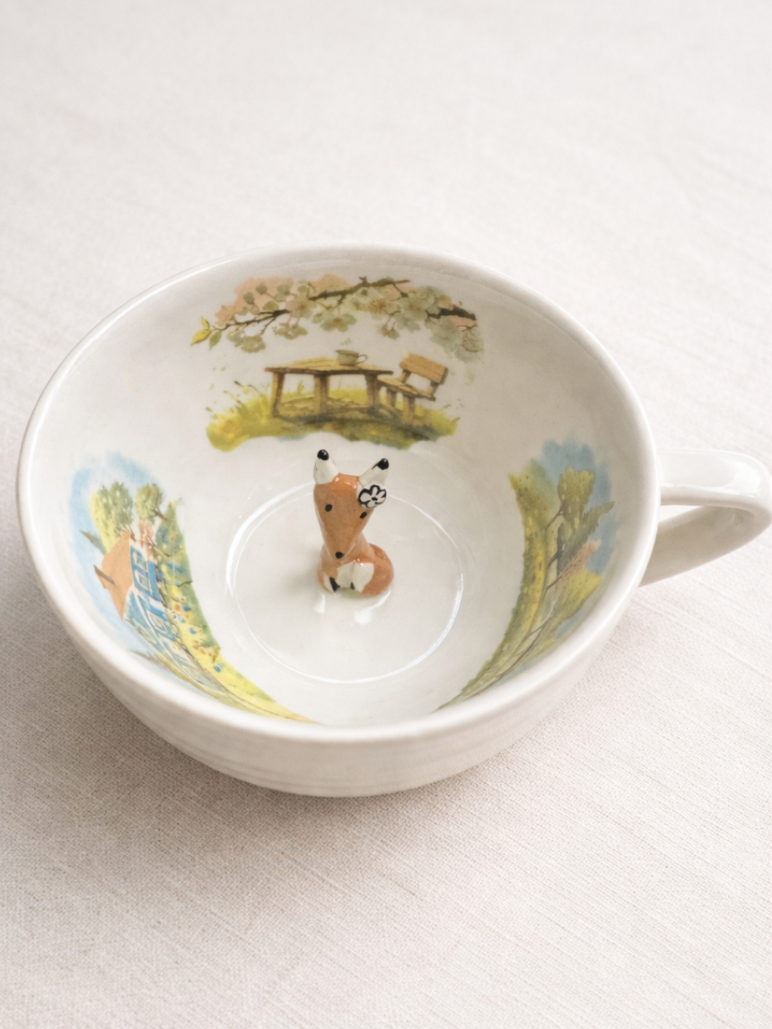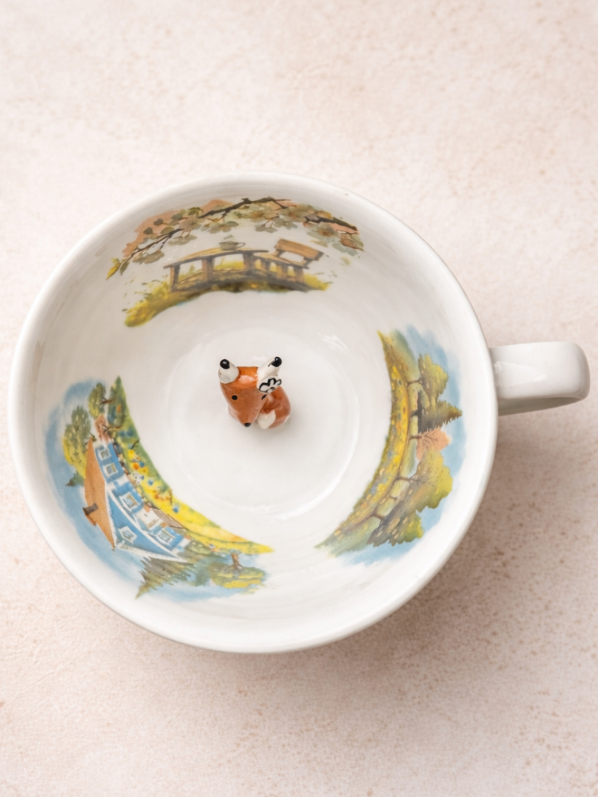 Чашка для чая ручной работы Мадам де Тюль с фигуркой внутри Лиса с домиком, фарфор, 250 мл