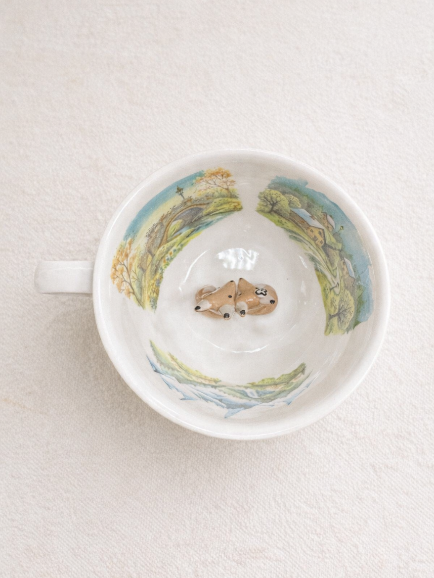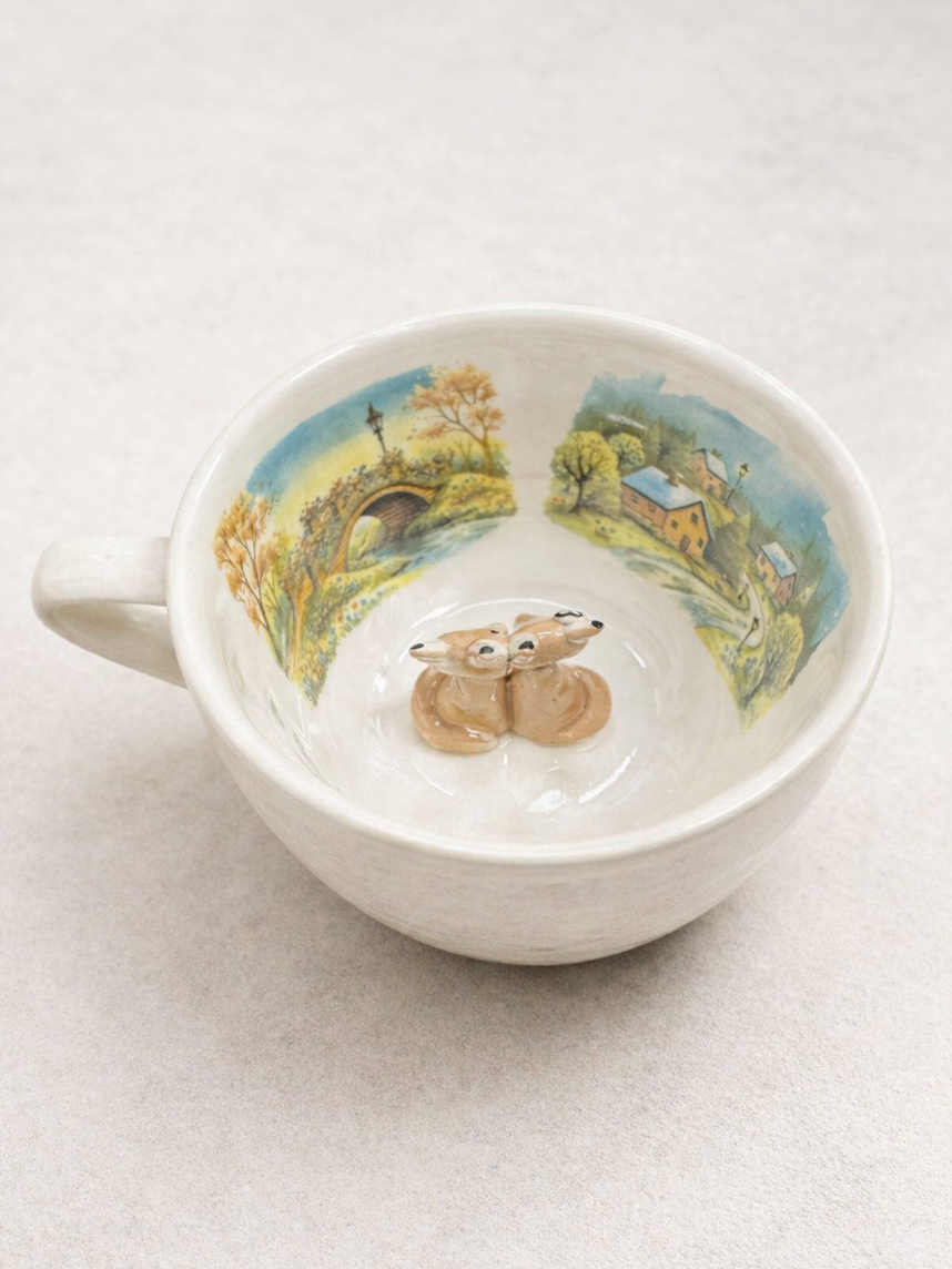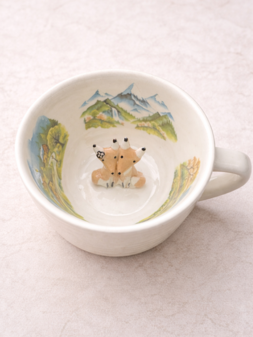Чашка для чая ручной работы с фигуркой внутри «Лисички в горах».