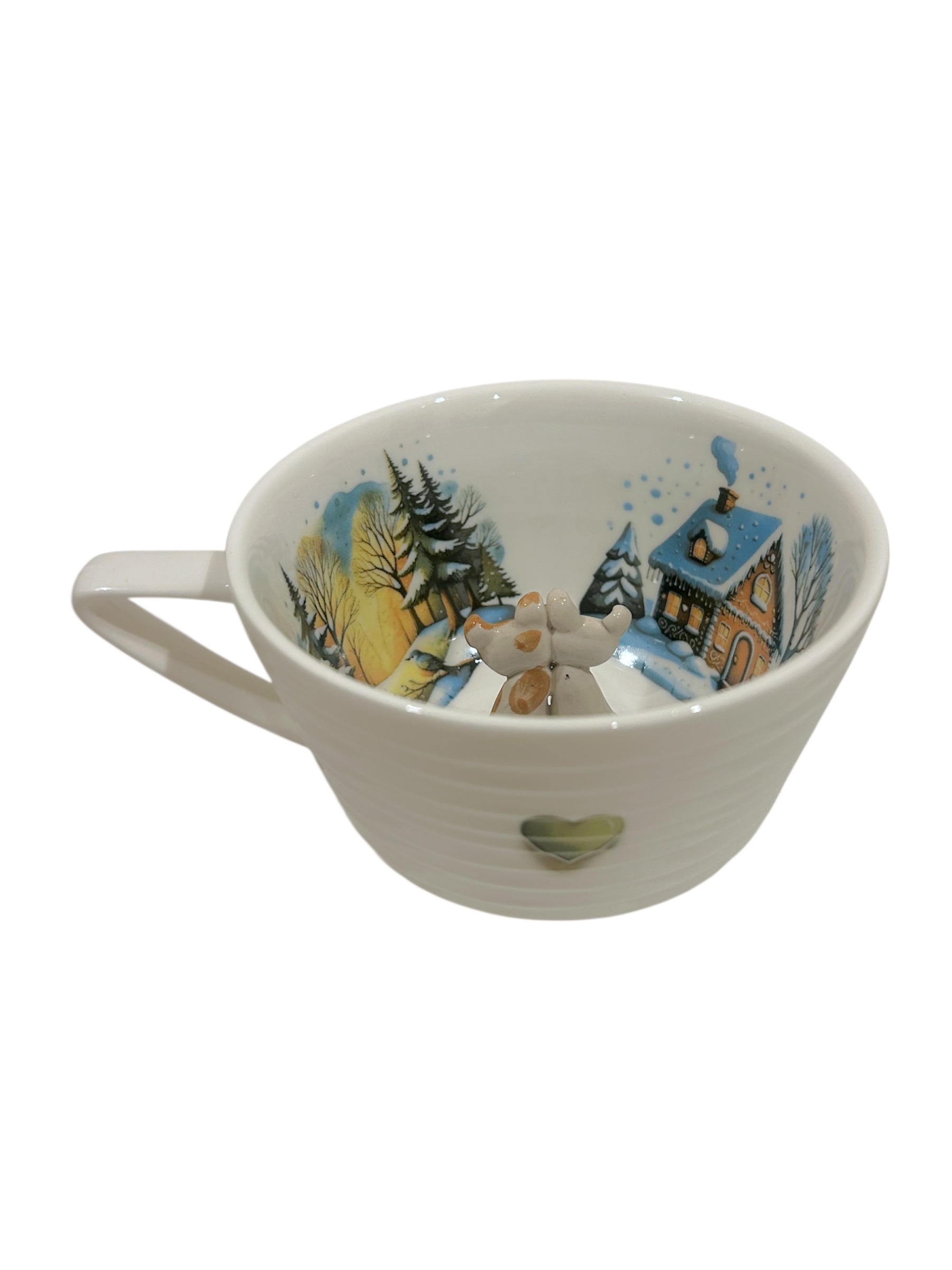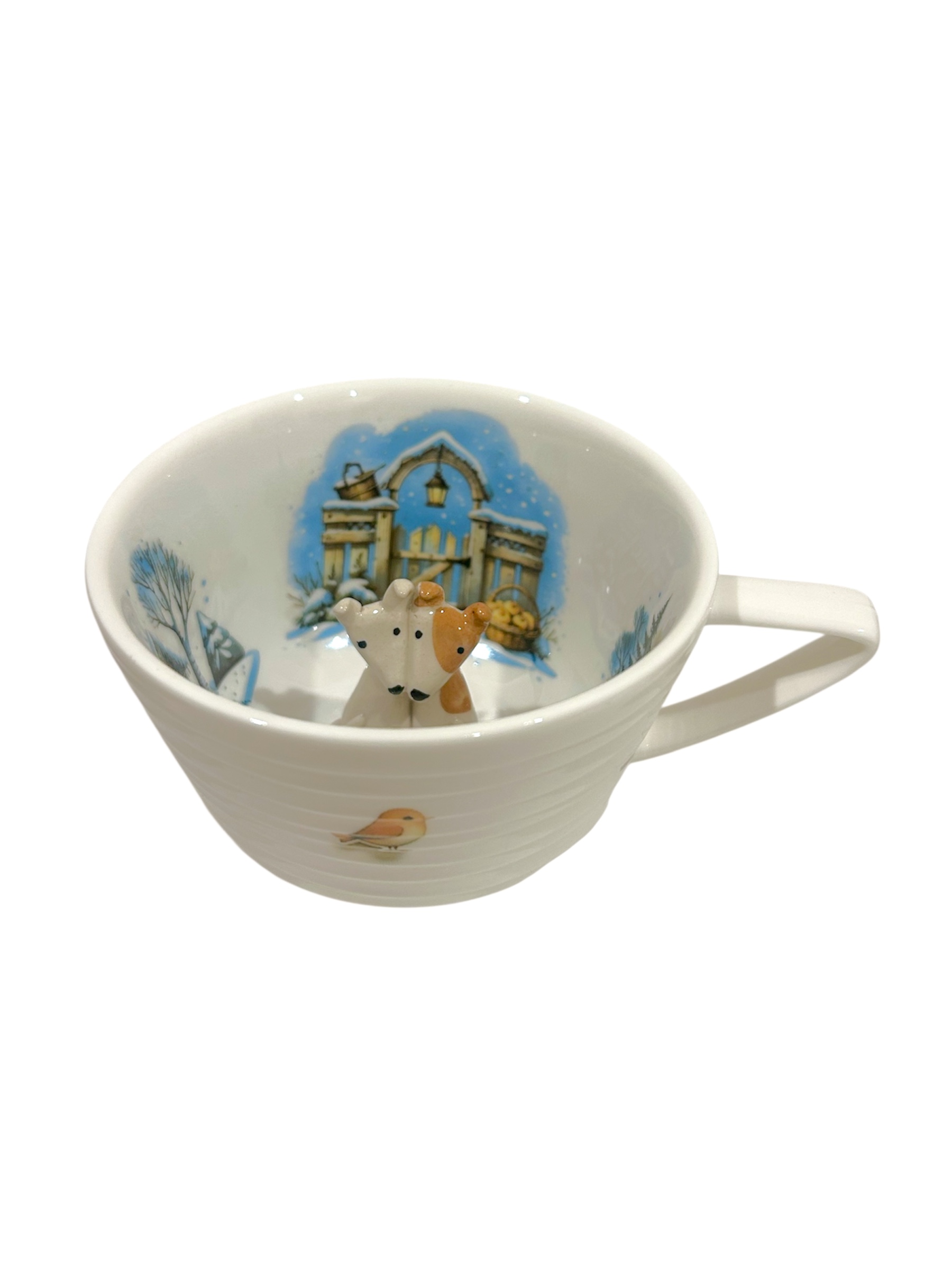 Чашка для чая ручной работы с фигуркой внутри «Пёсики в зимнем лесу».