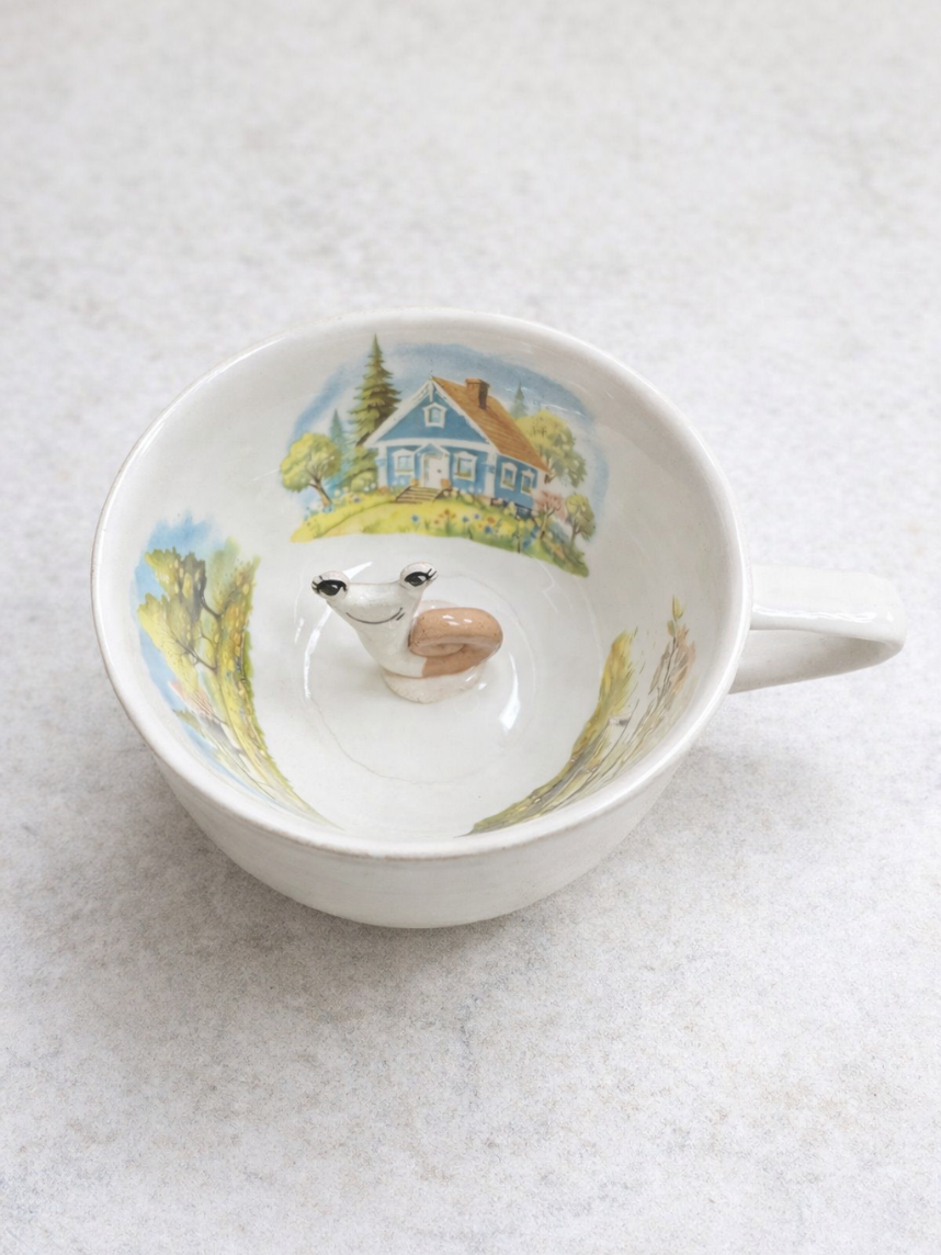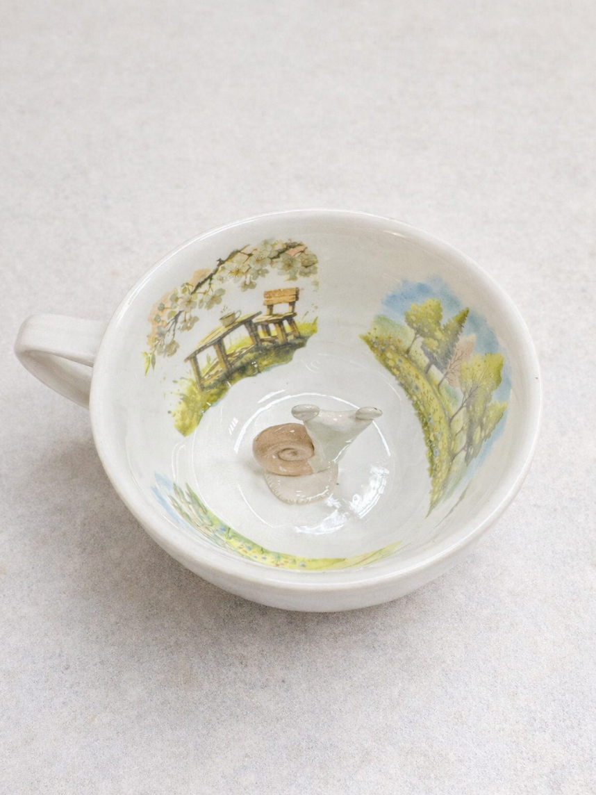 Чашка для чая ручной работы с фигуркой улиточки внутри.