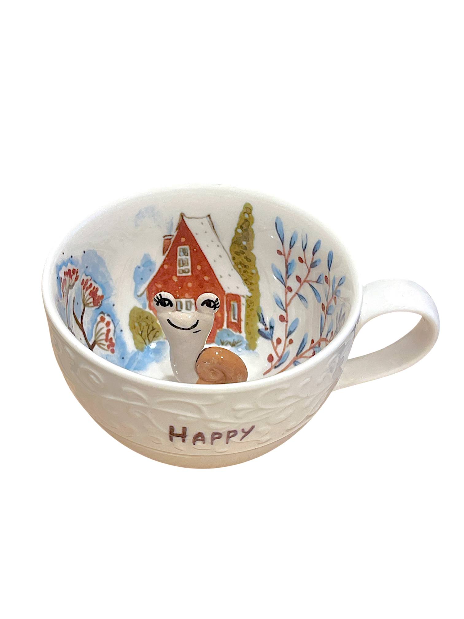 Чашка для чая ручной работы с фигуркой внутри Улитка у домика.