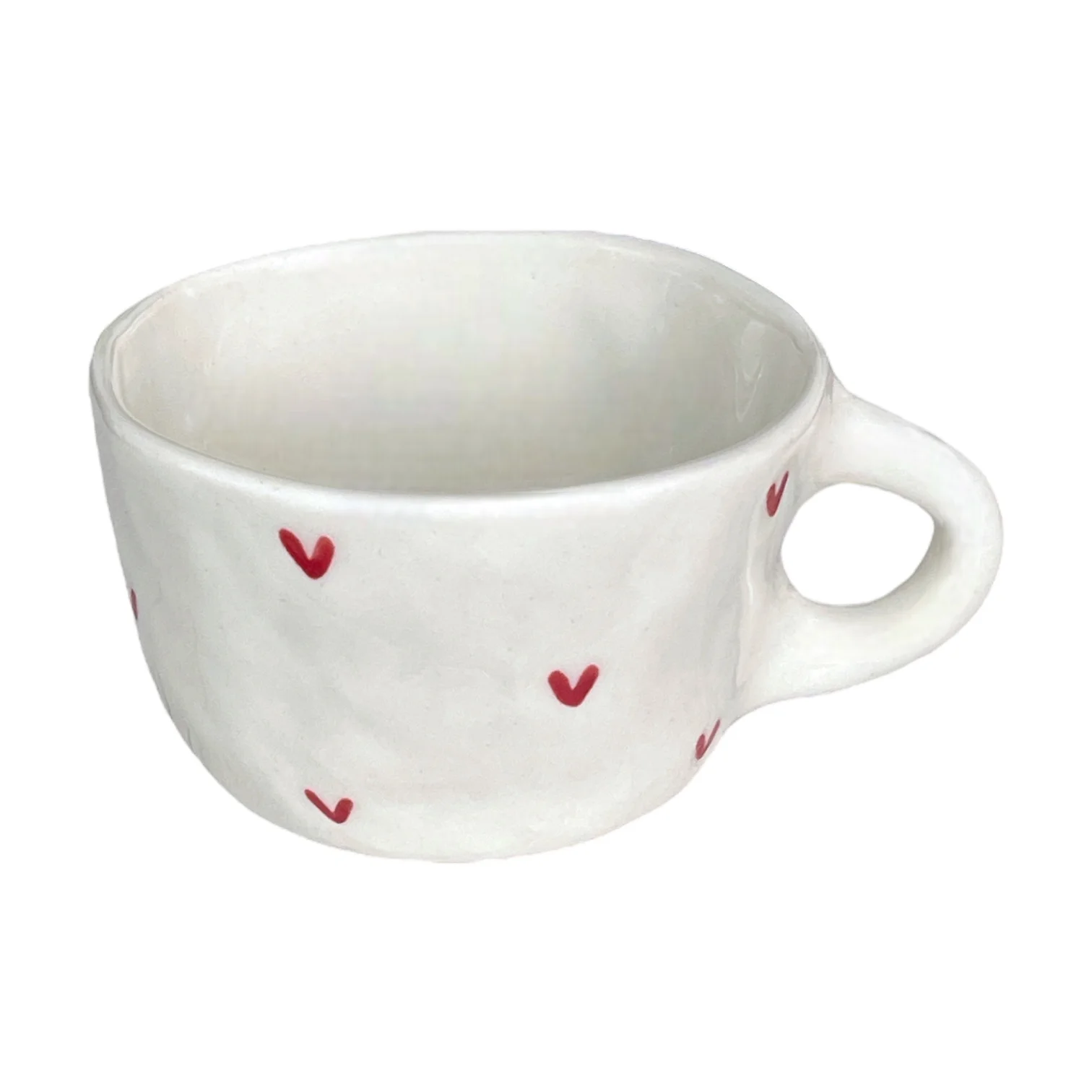 Чашка для чая ручной работы Сердечки красные, керамика, 250 мл