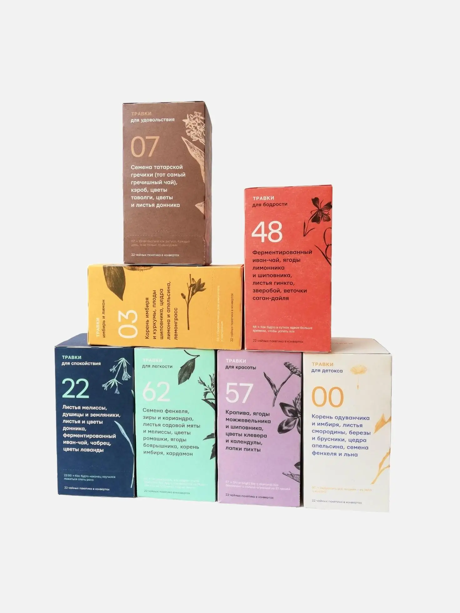 Чай травяной «Травки ассорти», 7 пачек - набор, который предлагает все семь вкусов чая для разных случаев жизни.
