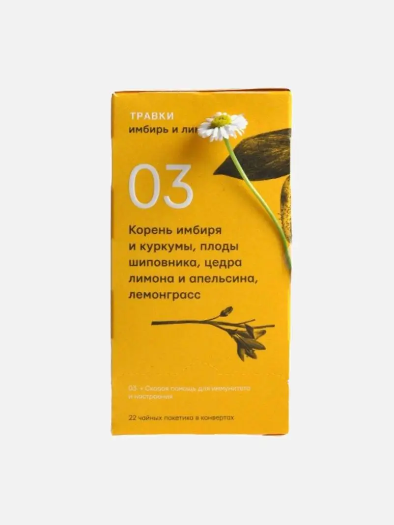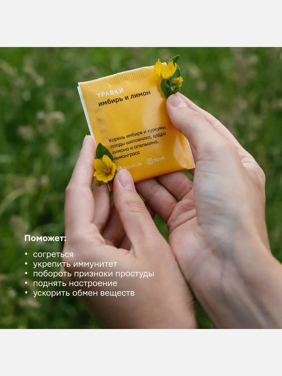 Чай травяной «Травки имбирь и лимон» - это идеальное сочетание трав, ягод и специй, которое поможет поддержать ваш иммунитет и согреть вас в холодные дни. Мы усилили его витаминный состав и придали более интересный вкус, добавив пряности куркумы, сладость шиповника и кислинку лемонграсса. Этот чай поможет вам согреться, укрепить иммунитет, справиться с первыми признаками простуды, поднять настроение и ускорить обмен веществ.
