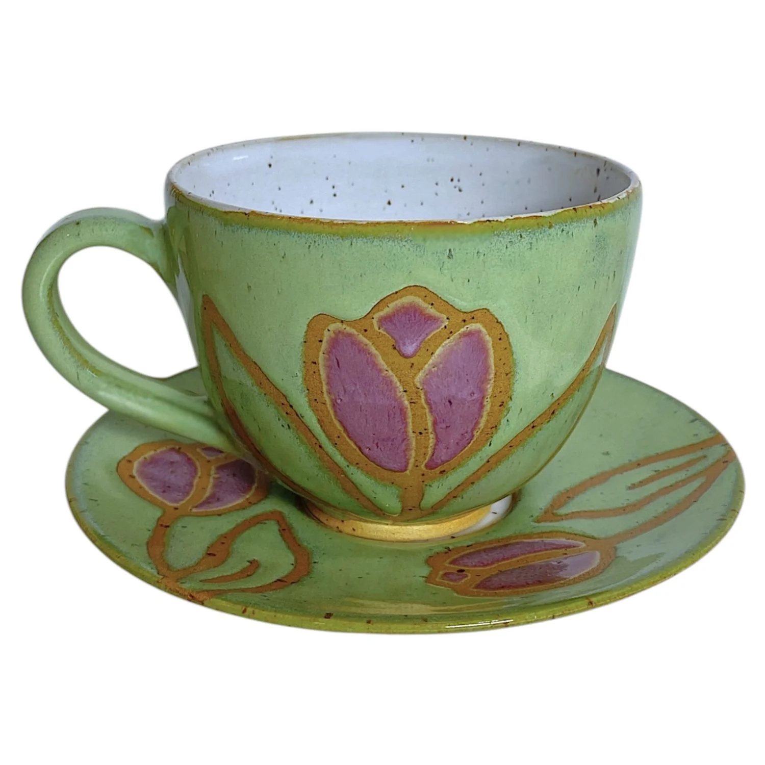 Чайная пара ручной работы «Розовые тюльпаны», керамика, 400 мл