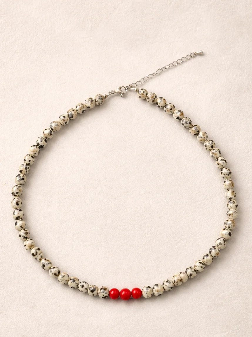 Чокер из далматиновой яшмы с красным камнем Мигетт