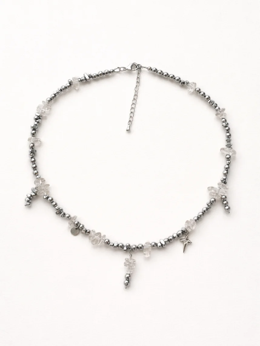 Чокер из гематита Мигетт с камнями и подвесками, 45 см