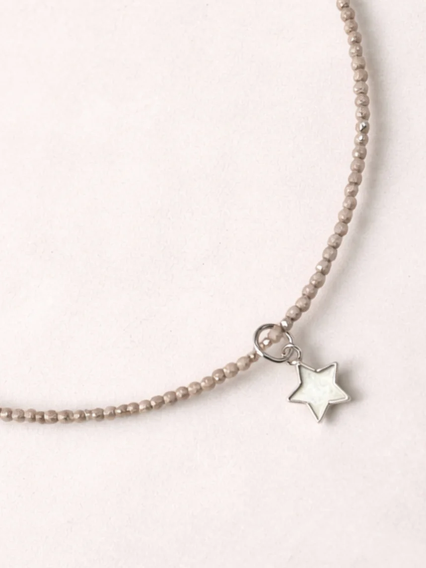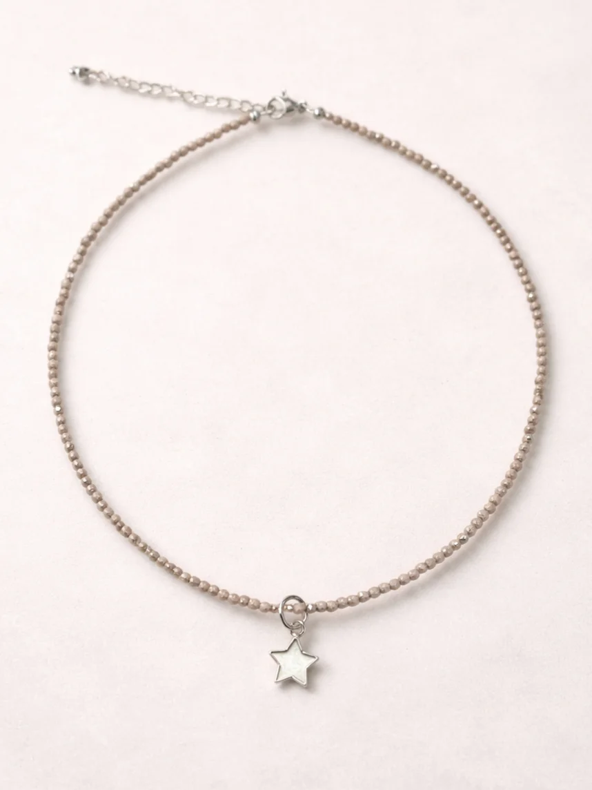 Чокер Мигетт «Звёздочка» из мелкой бежевой шпинели с подвеской
