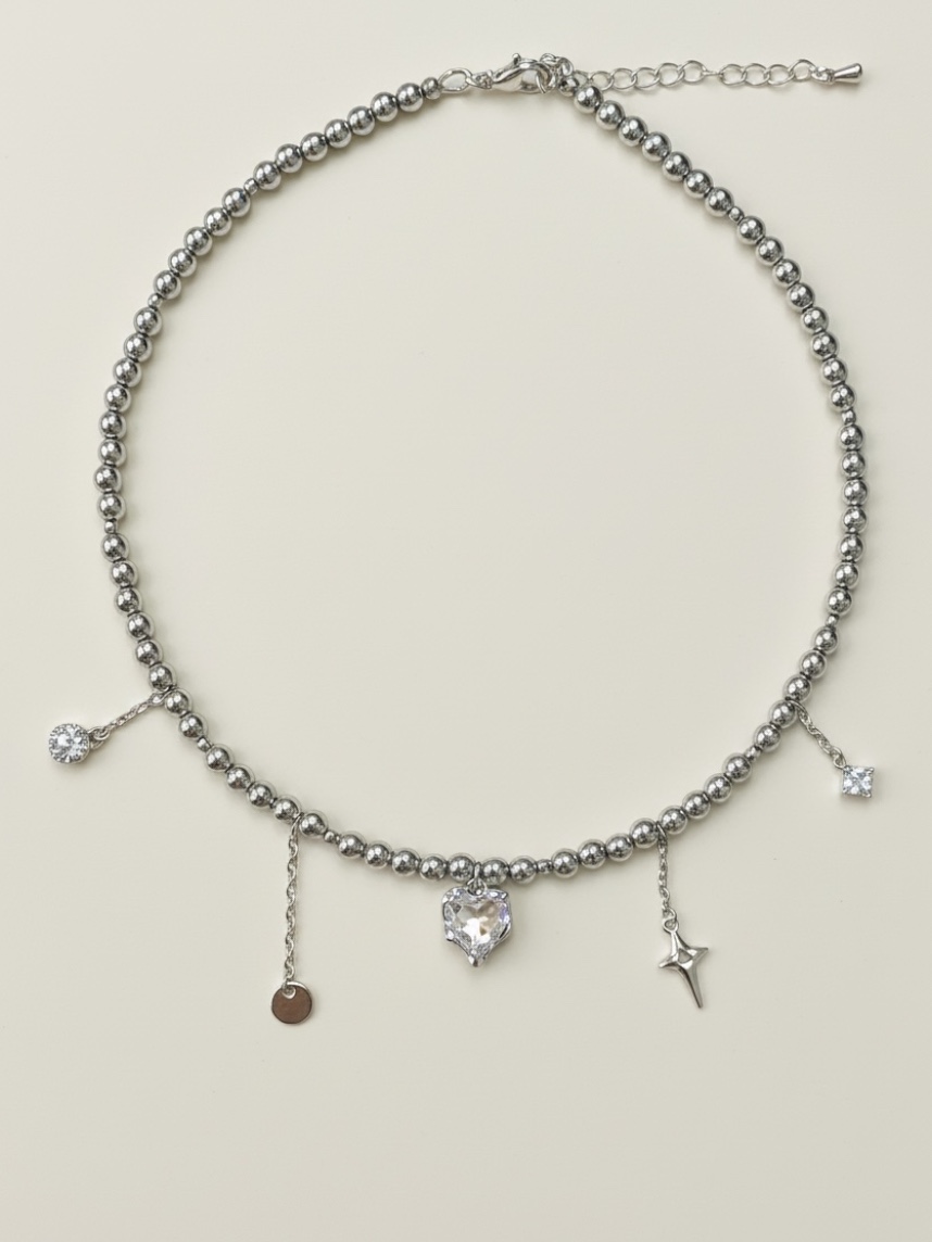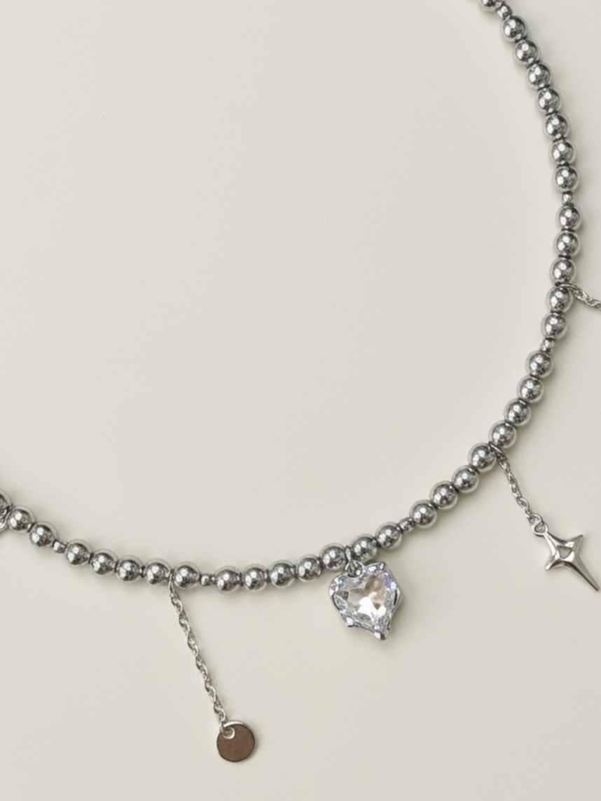Чокер из тёмного гематита с подвесками «Сердечко, звездочка, шар» Migette — очаровательное и стильное украшение, которое подчеркнет вашу нежность и индивидуальность.