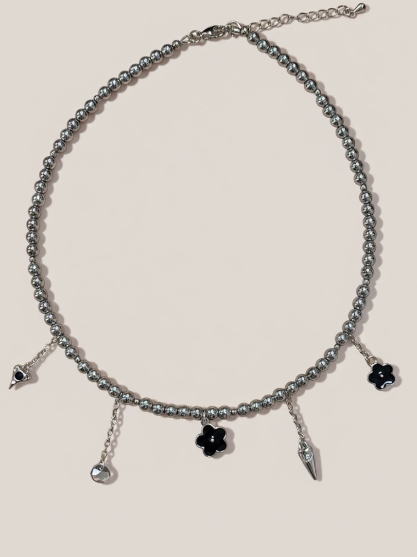 Этот чокер выполнен из натурального гематита, украшенного милыми подвесками в виде цветочков, сердечек создающими игривый и романтичный образ.