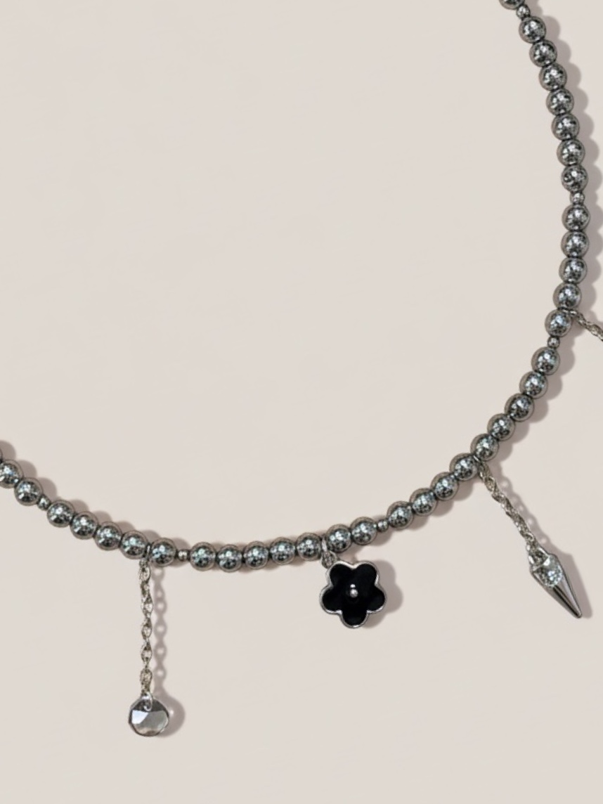 Чокер из гематита с подвесками «Цветочки» Migette — очаровательное и стильное украшение, которое подчеркнет вашу нежность и индивидуальность.