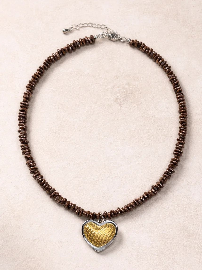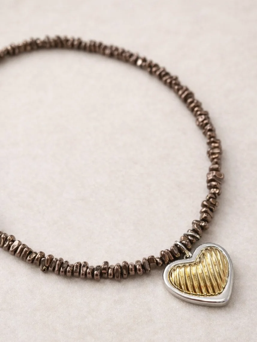 Чокер Мигетт с подвеской «Сердце», гематит, коричневый