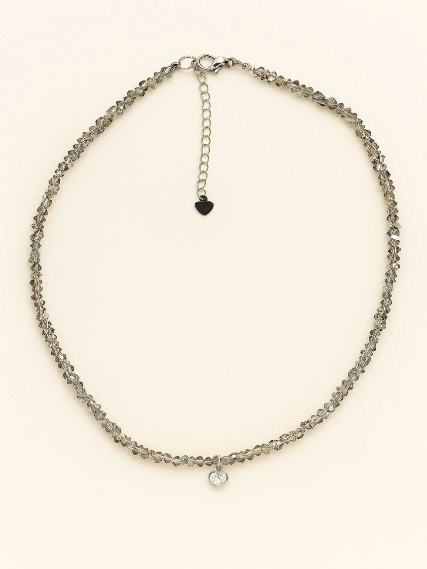 Чокер ручной работы «Heart. Silver», алмазное стекло, родированная латунь