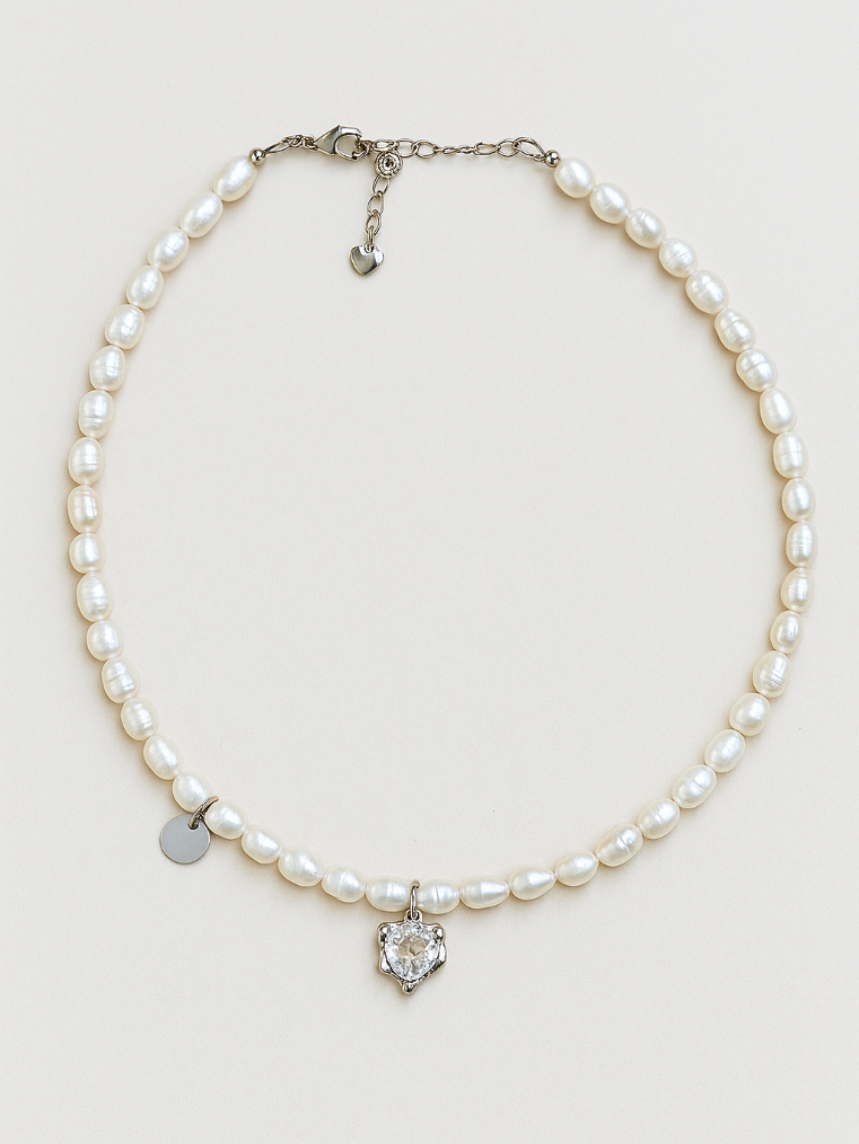 Чокер ручной работы «Ice», речной жемчуг, родированная латунь