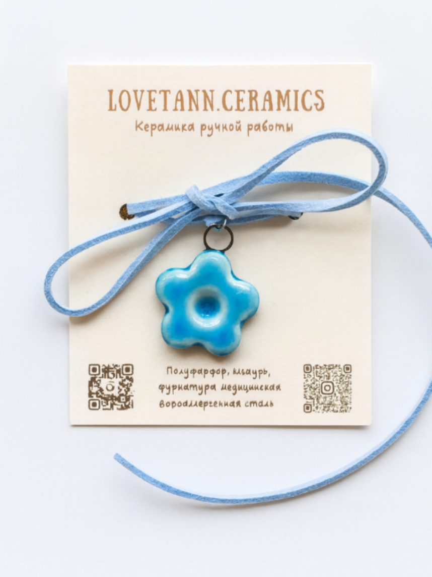 Чокер ручной работы «Лазурный цветок», полуфарфор