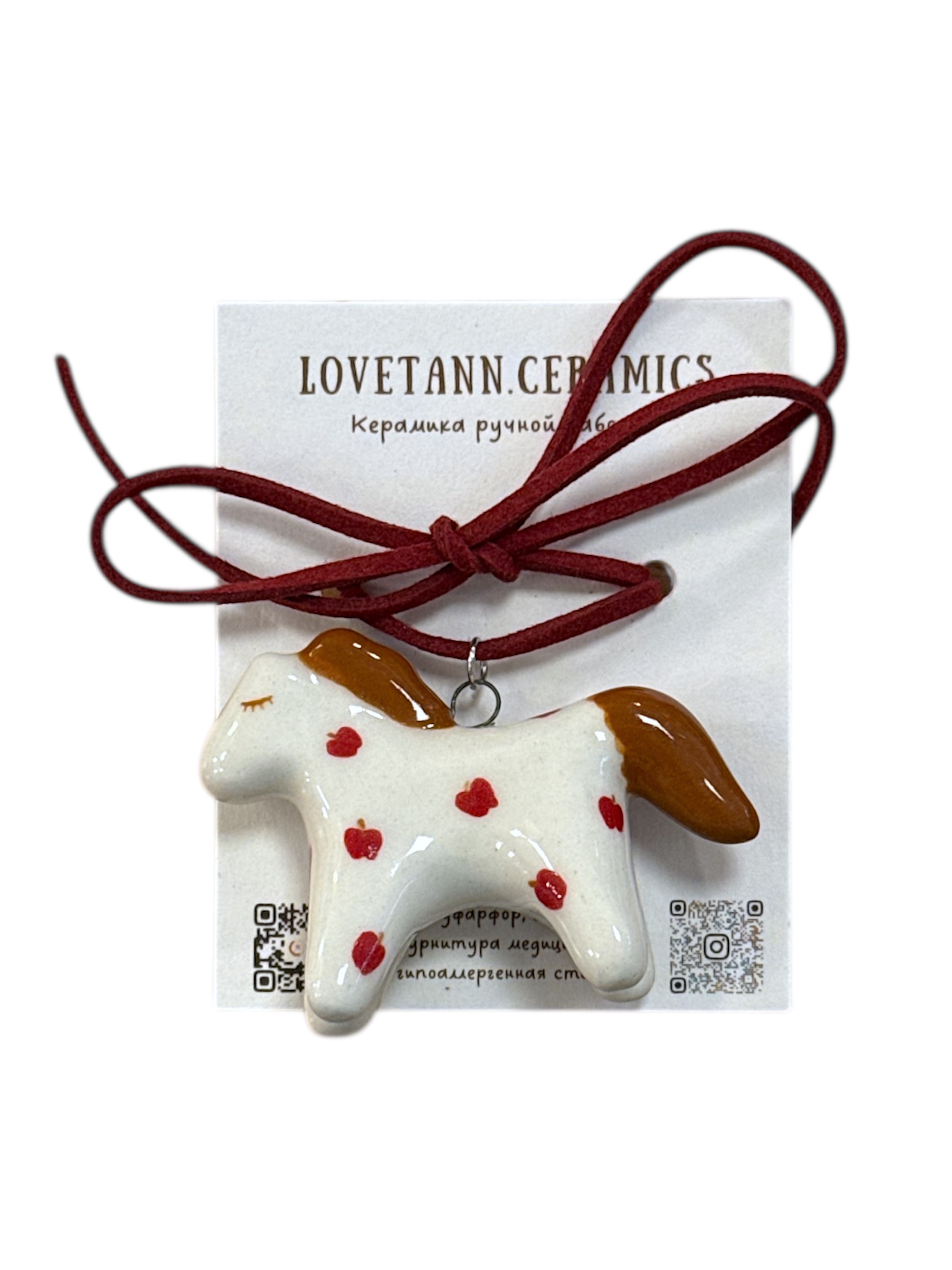 Чокер ручной работы «Лошадка» с яблоками, полуфарфор