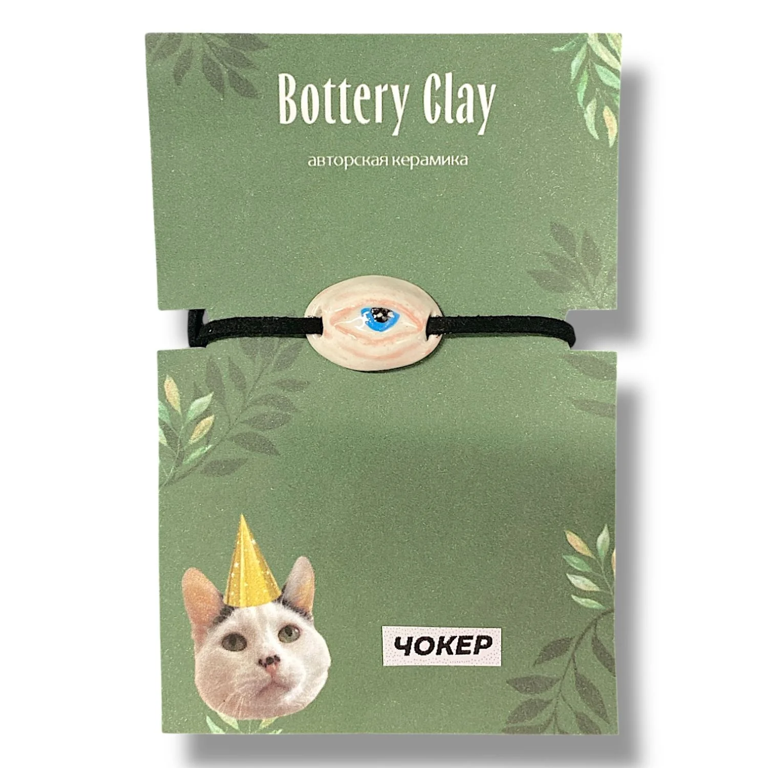 Чокер ручной работы Боттери керамика на кожаном ремешке «Глаз», керамика