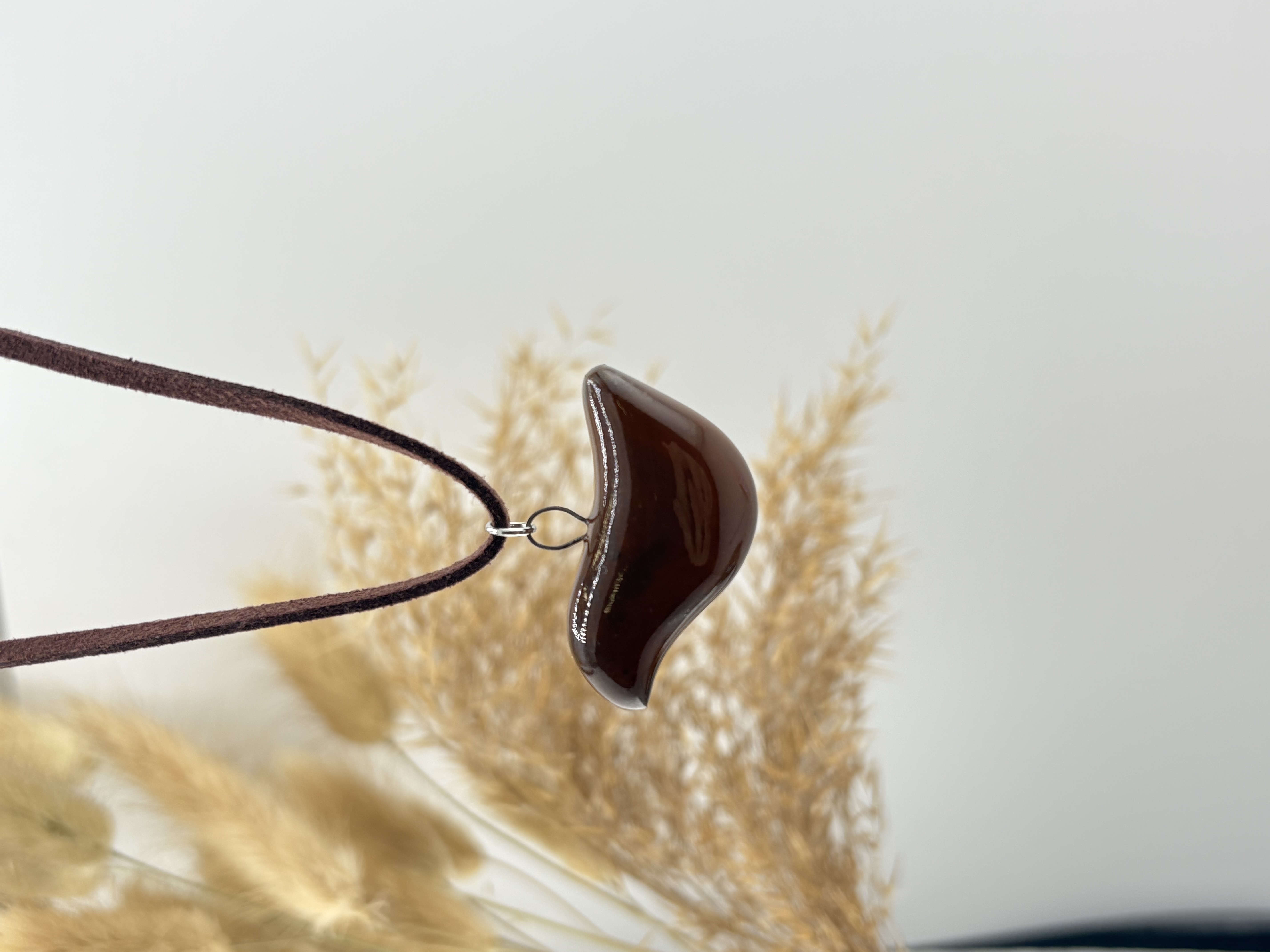 Чокер ручной работы «Птичка» на замшевом шнурке, коричневый, керамика