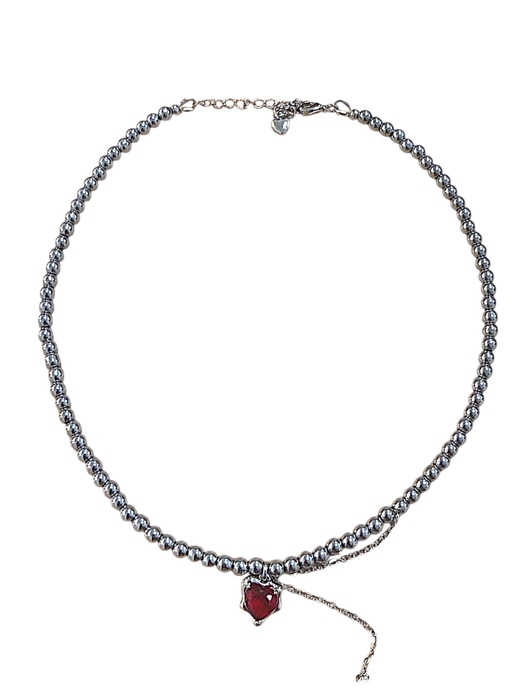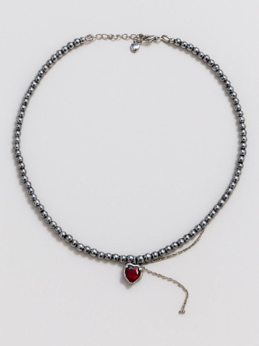 Тёмный гематит, красное сердце и асимметричная цепочка создают дерзкий акцент, который идеально смотрится с любыми украшениями.
