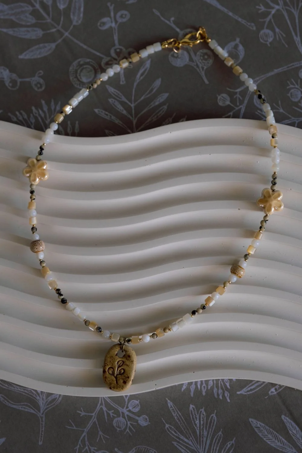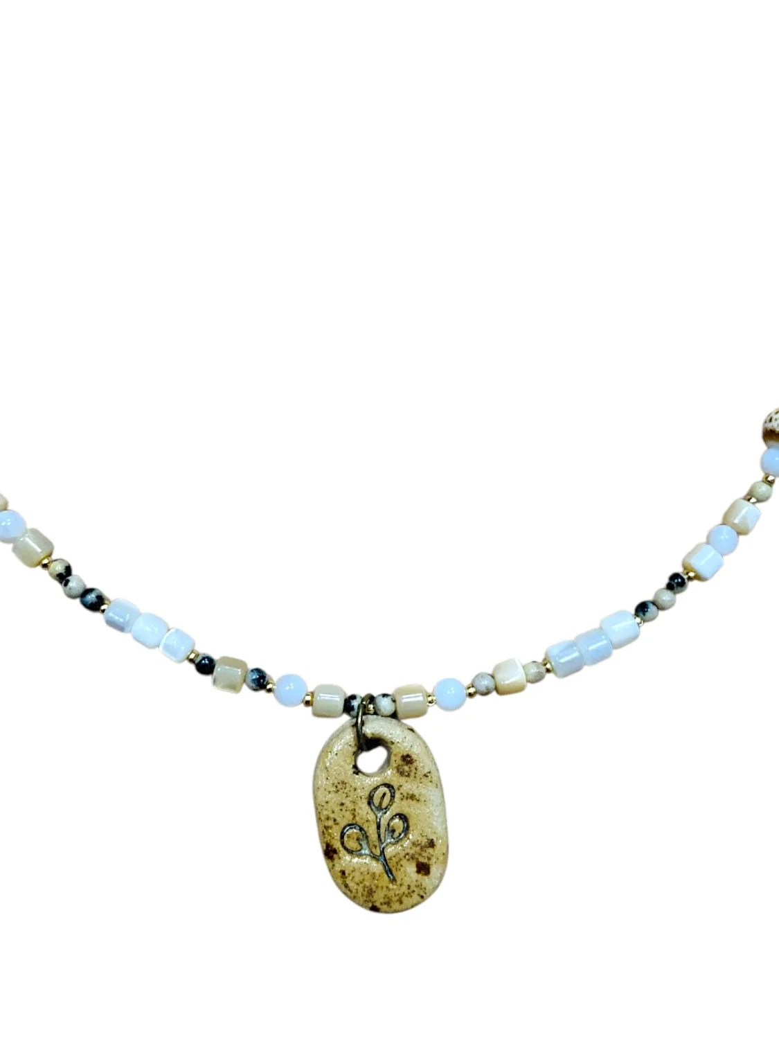 Чокер ручной работы Идеальное совпадение с керамической подвеской «Веточка», перламутр и далматиновая яшма