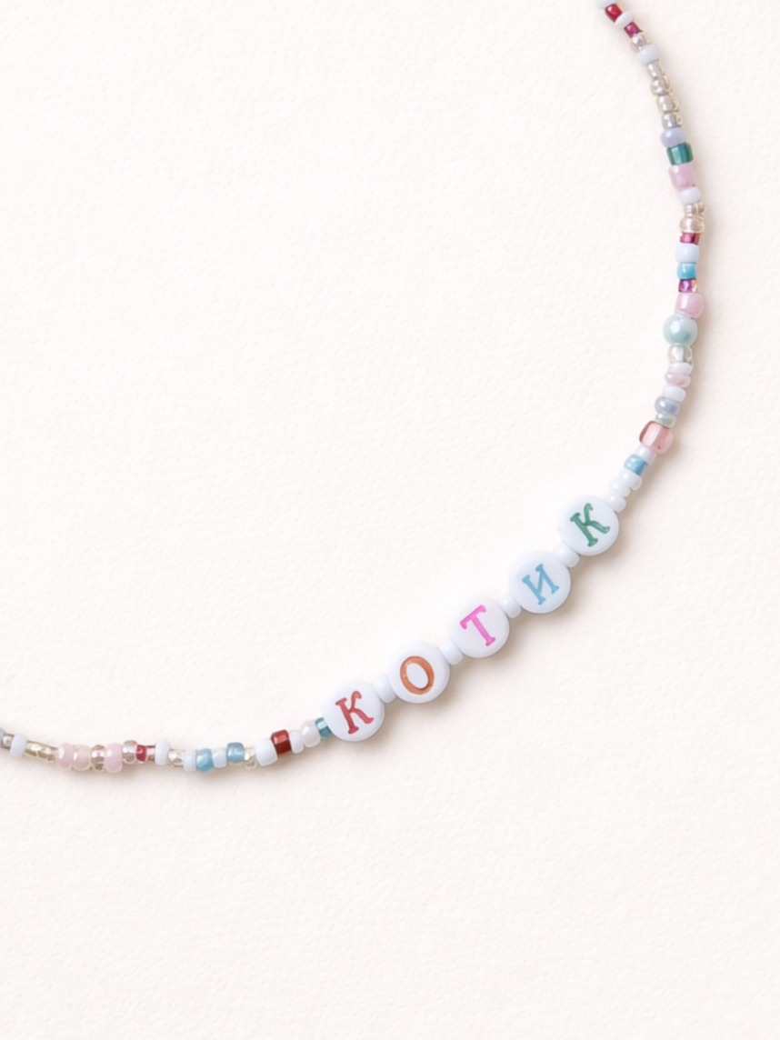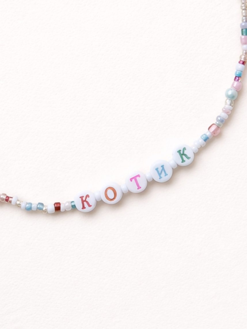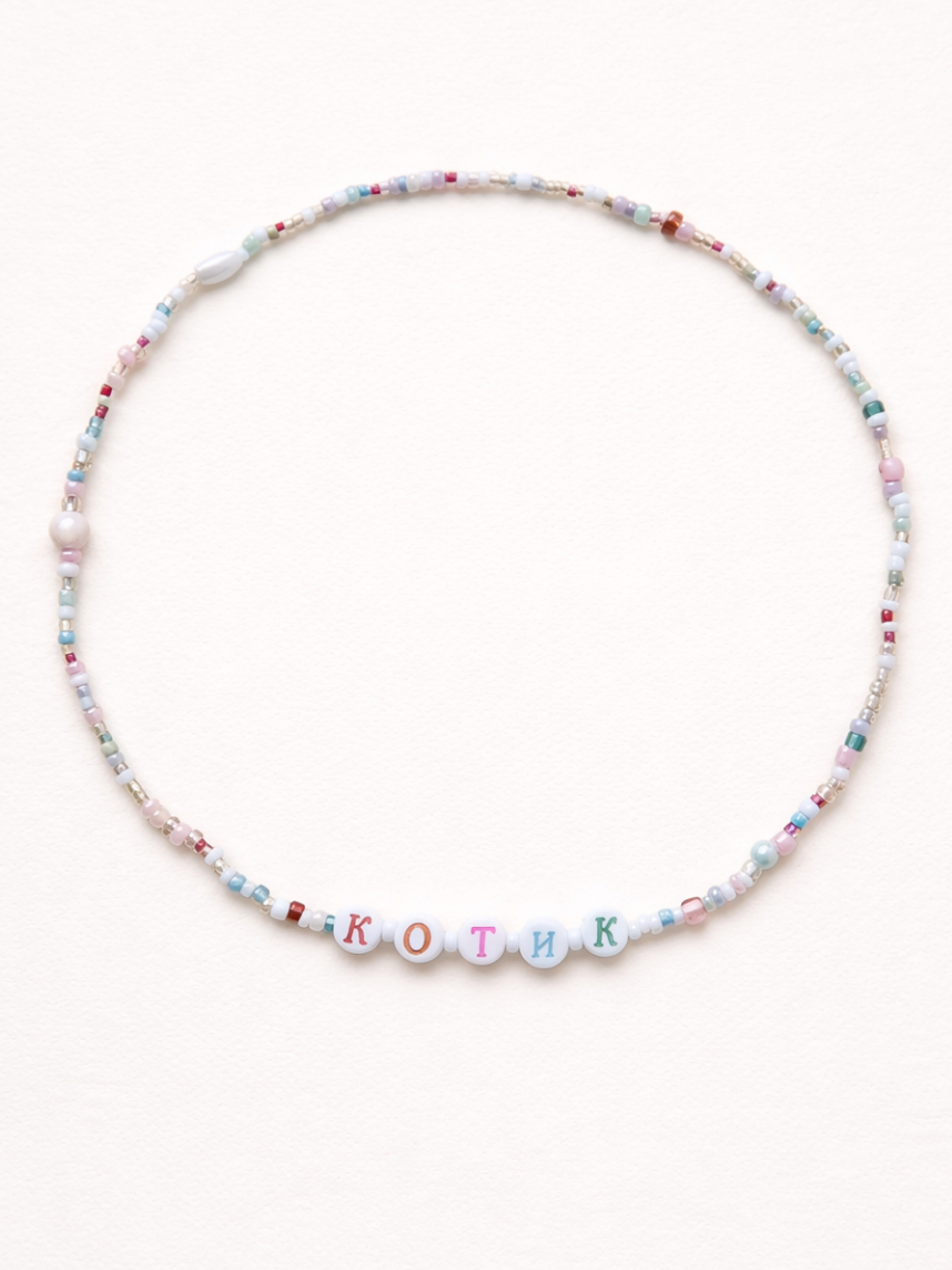 Чокер ручной работы Радость Рядом с надписью «Котик», бисер
