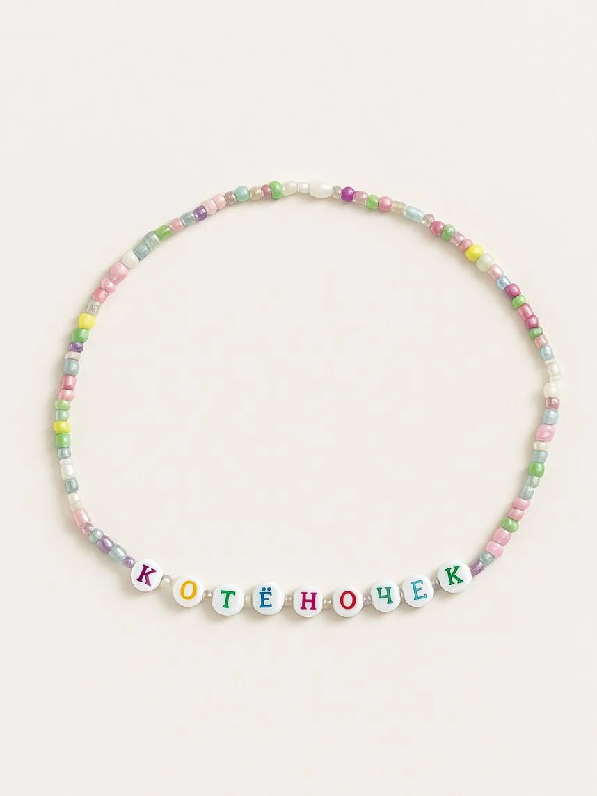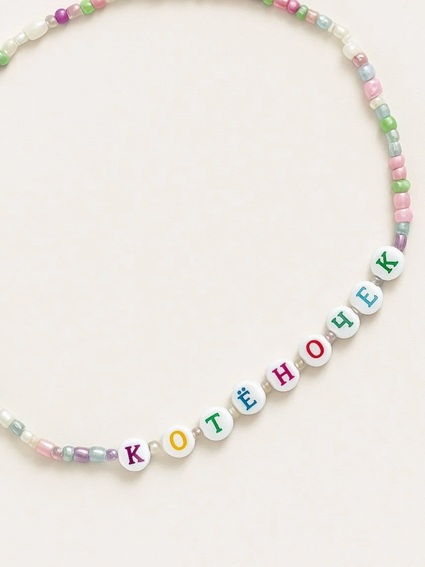 Чокер ручной работы Радость Рядом с надписью «Котёночек», бисер