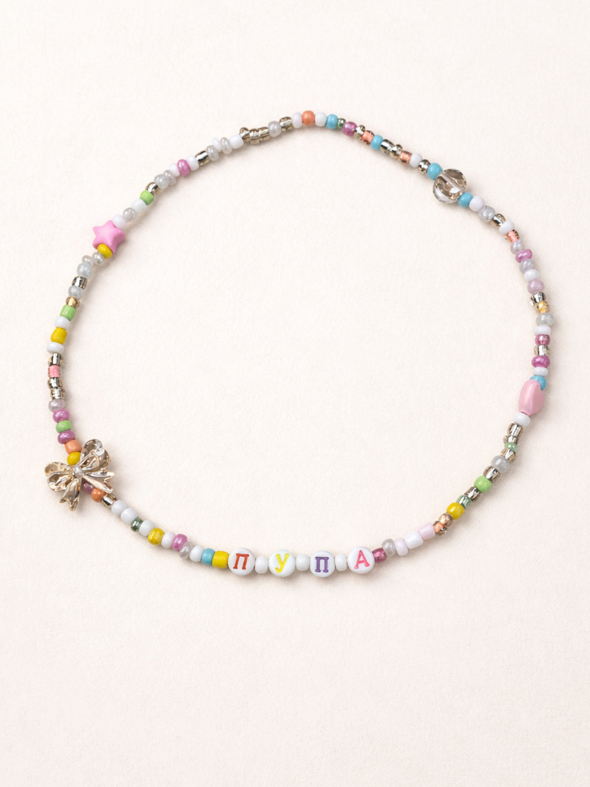 Чокер ручной работы Радость Рядом с надписью «Пупа», бисер
