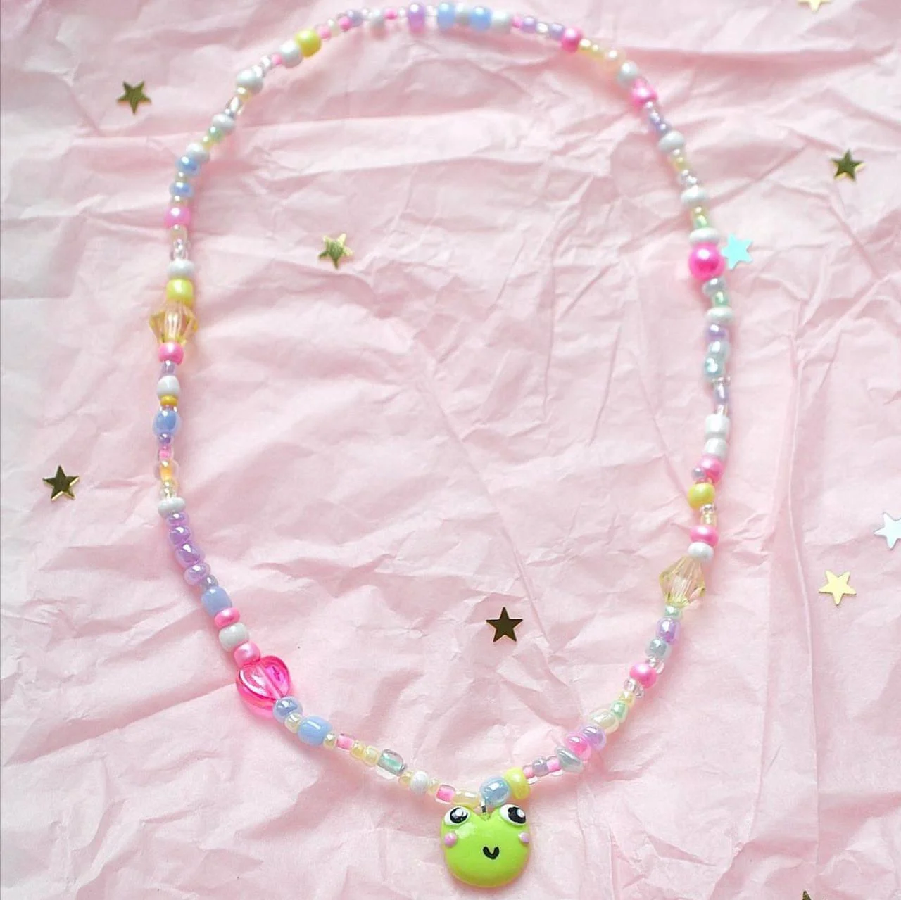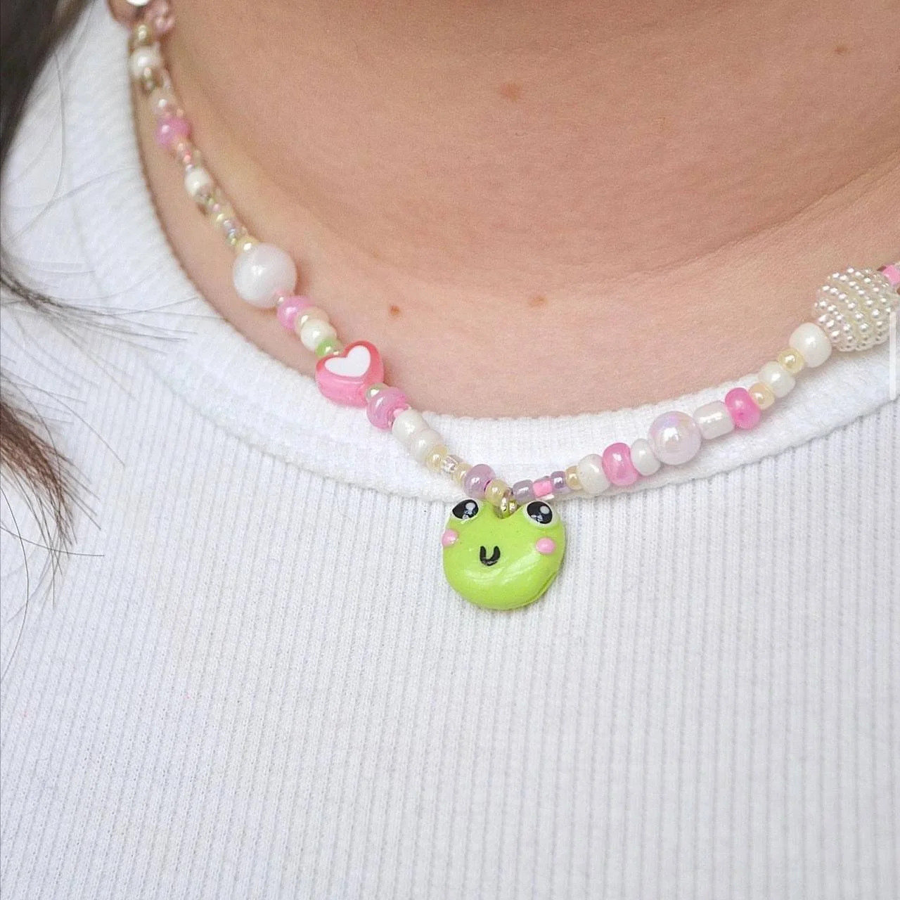 Чокер ручной работы Радость Рядом с подвеской «Лягушонок», полимерная глина, бисер