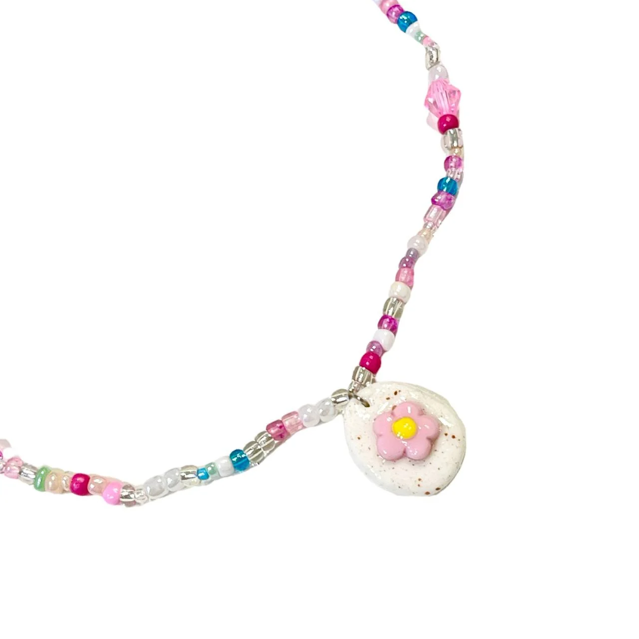 Чокер ручной работы Радость Рядом с подвеской «Розовый цветочек», разноцветный, бисер, полимерная глина