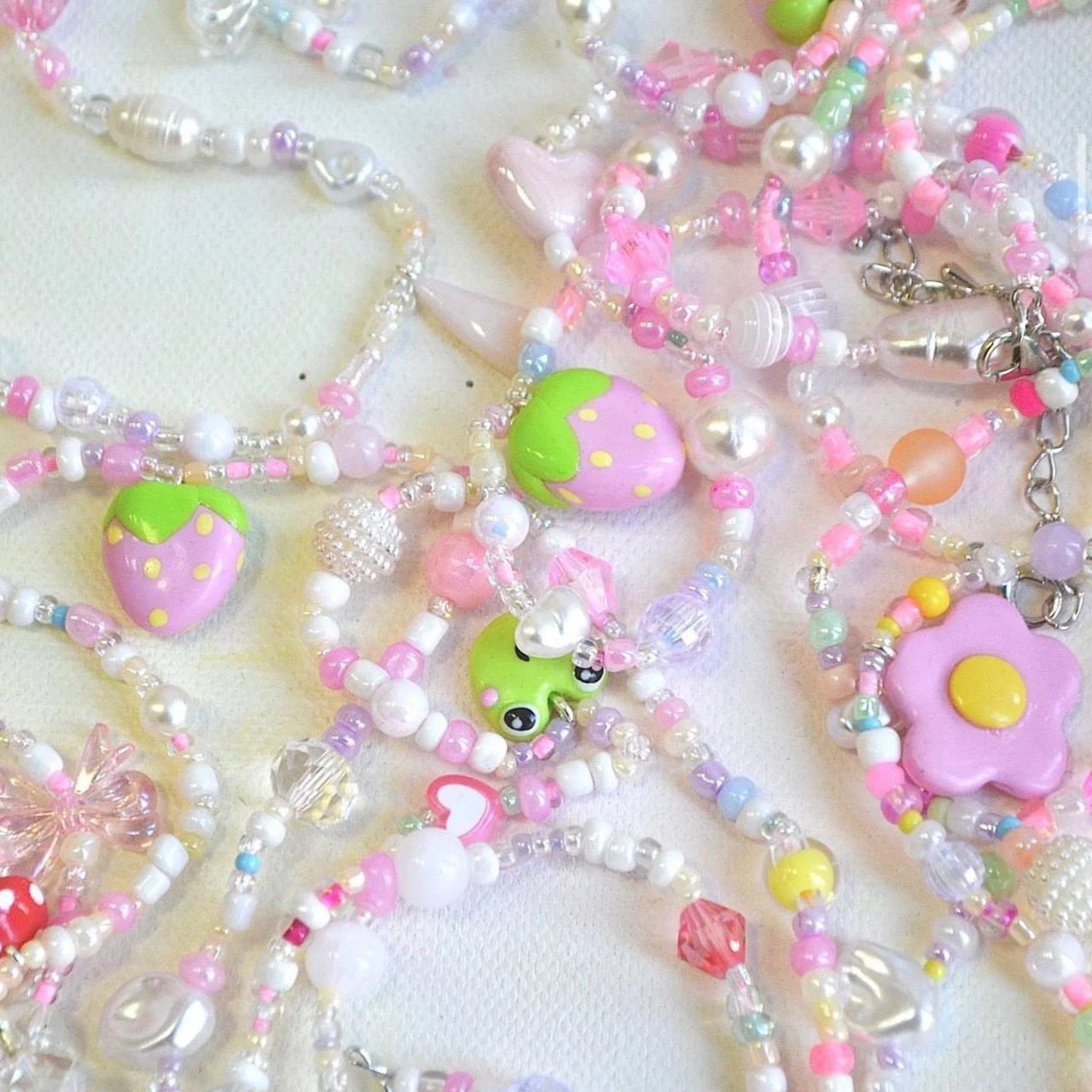 Чокер ручной работы из бисера разных цветов и размеров от петербургской мастерской «Радость Рядом». Выполненный в детском, игрушечном стиле, он не позволит вам остаться без внимания!