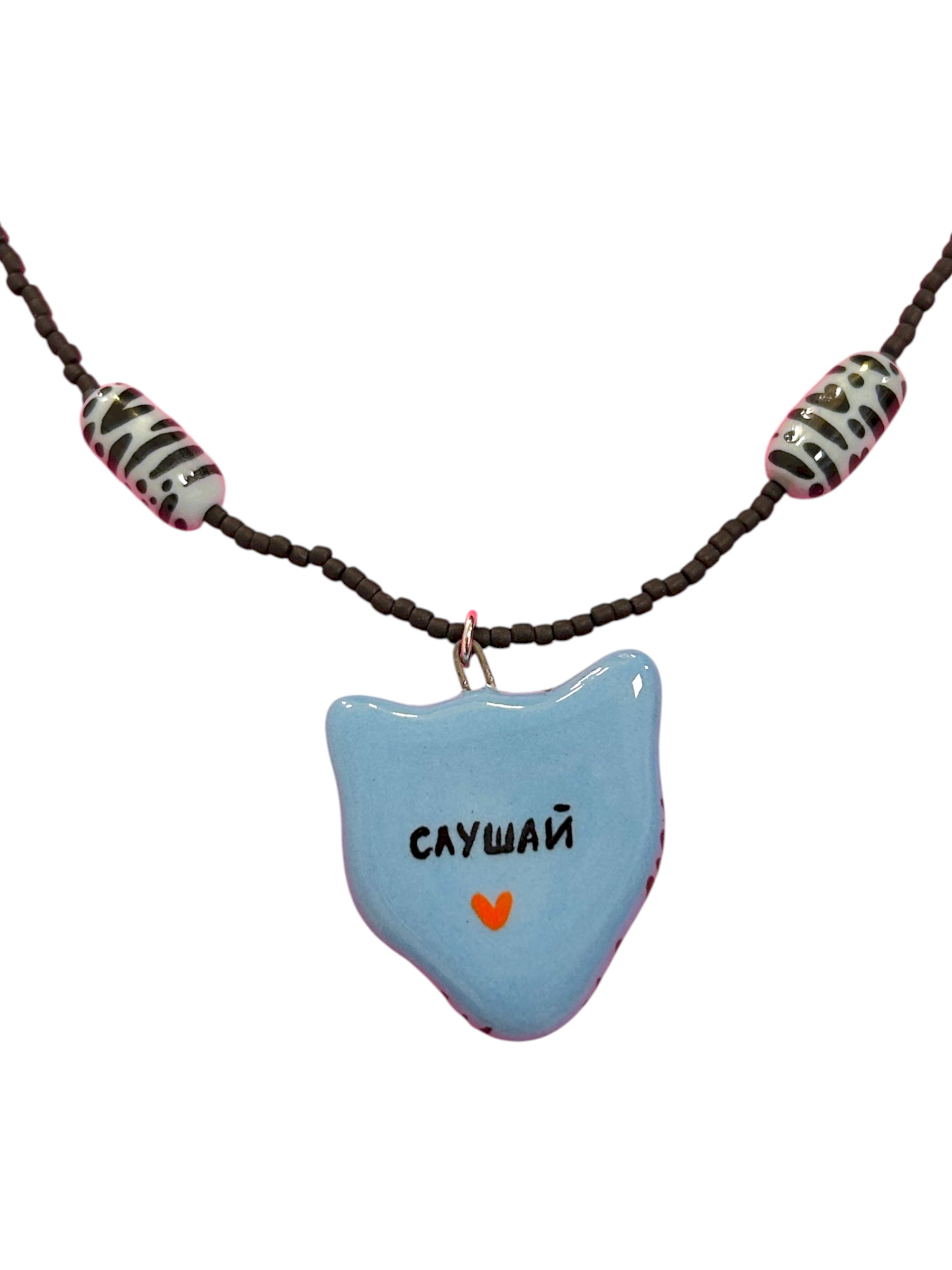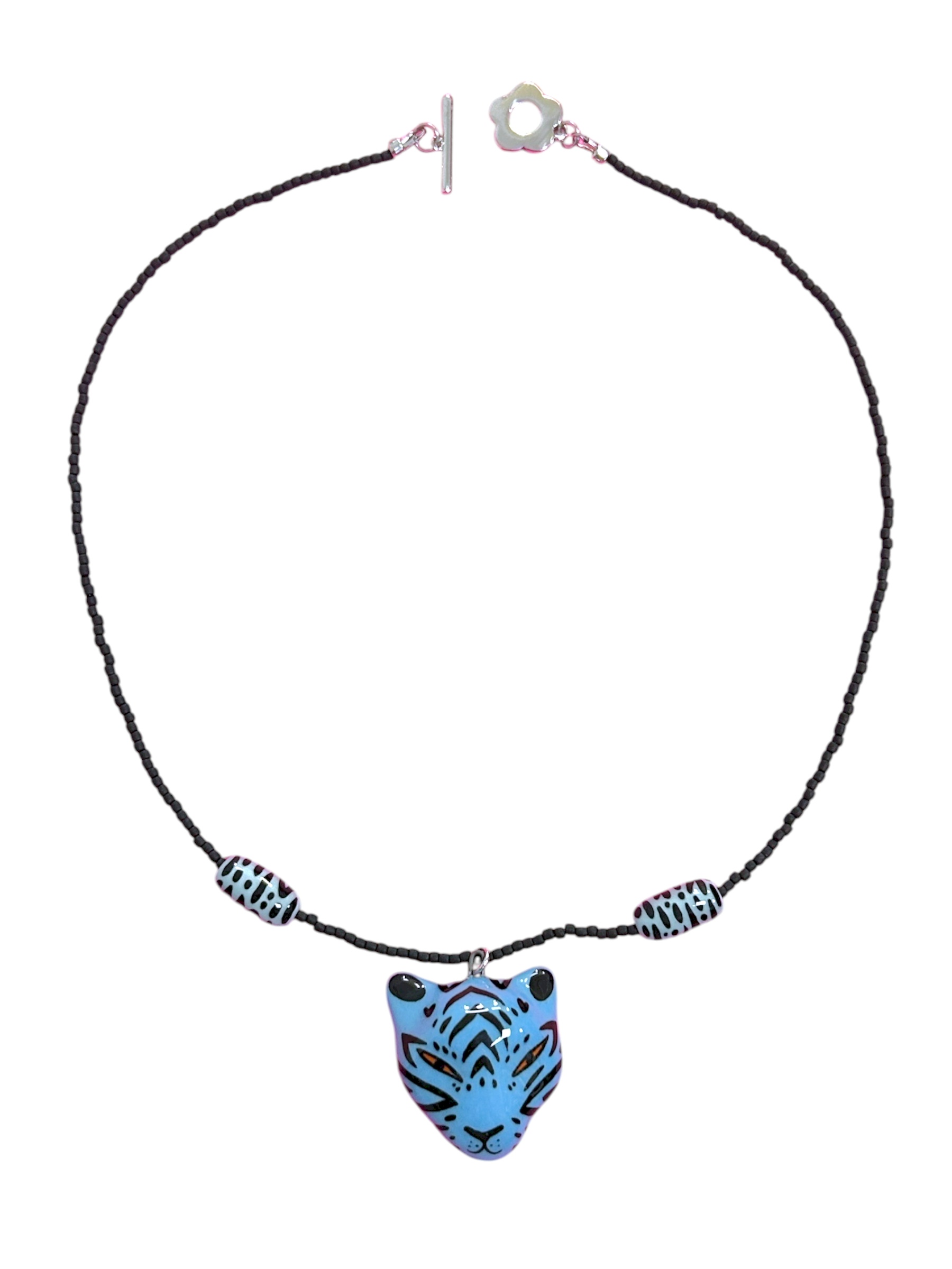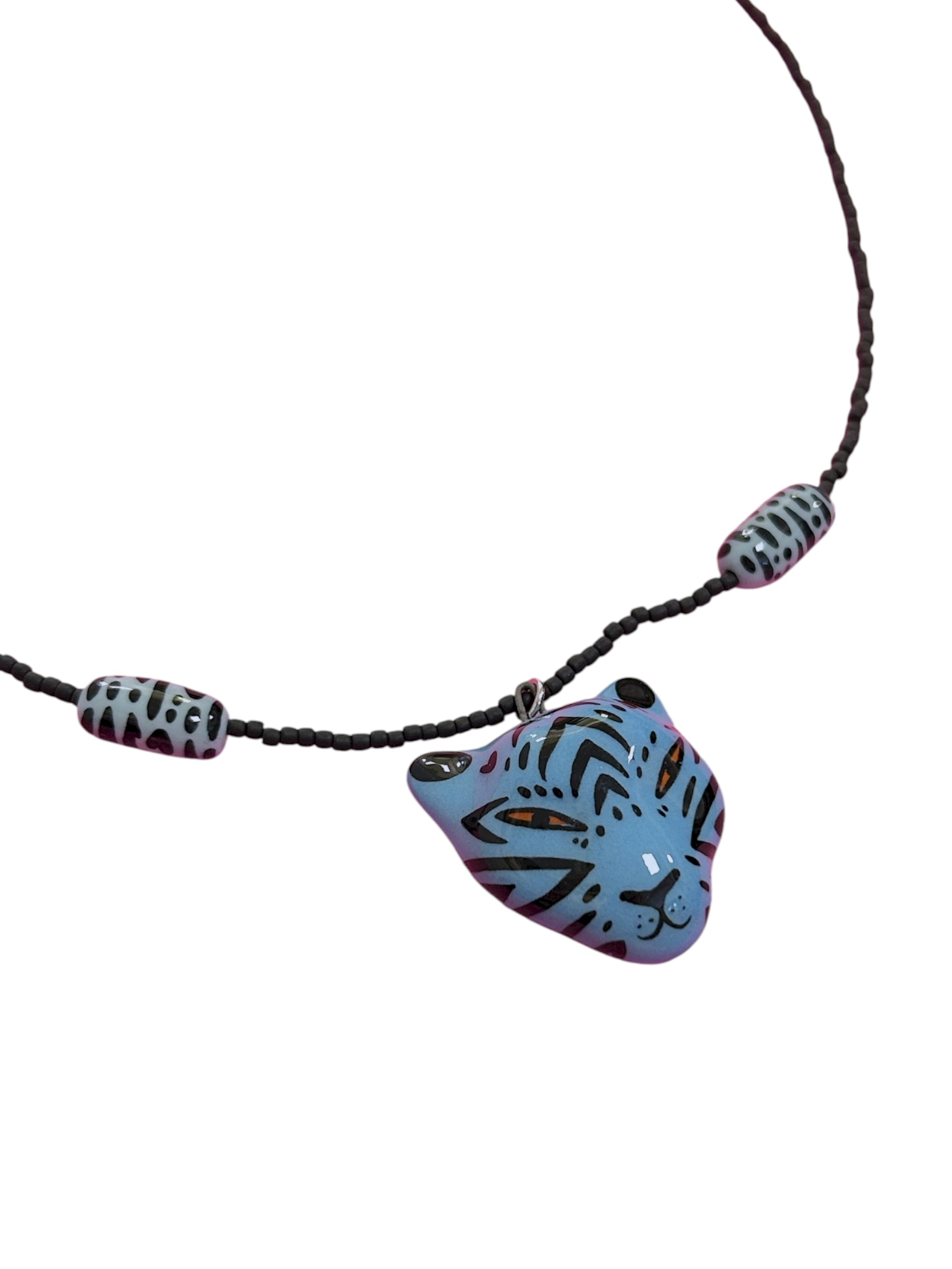 Чокер ручной работы с подвеской «Синий тигр» и керамическими бусинами, бисер