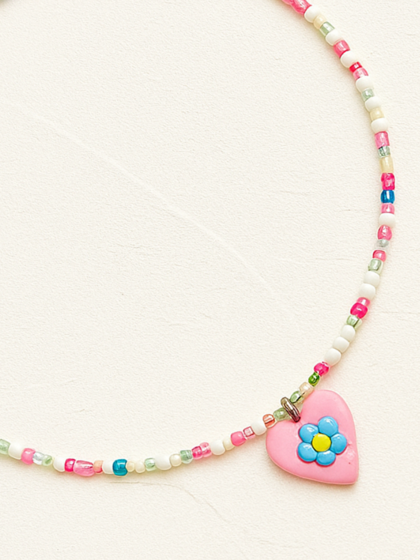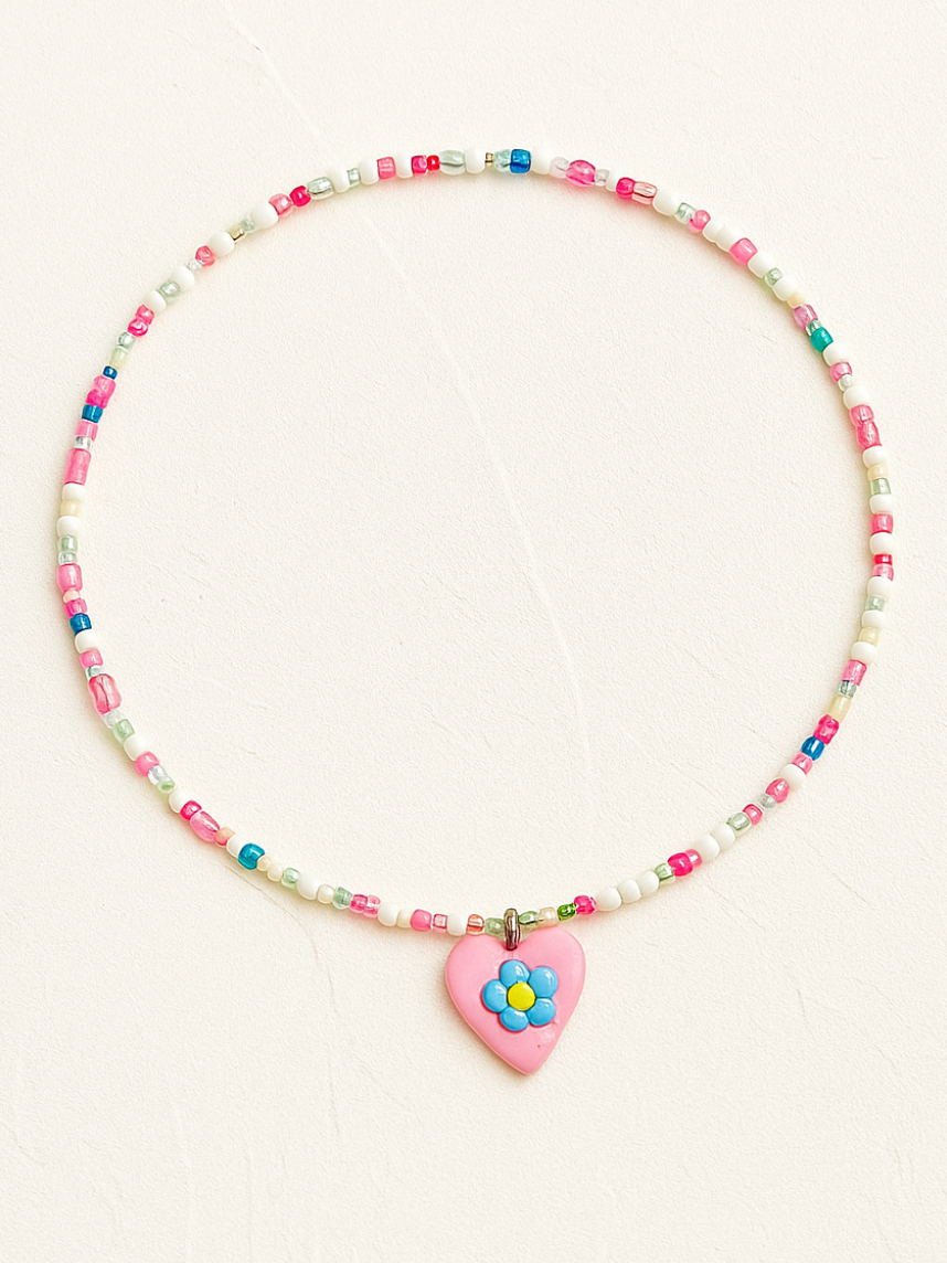 Чокер ручной работы с сердечком «Голубой цветочек», полимерная глина, бисер