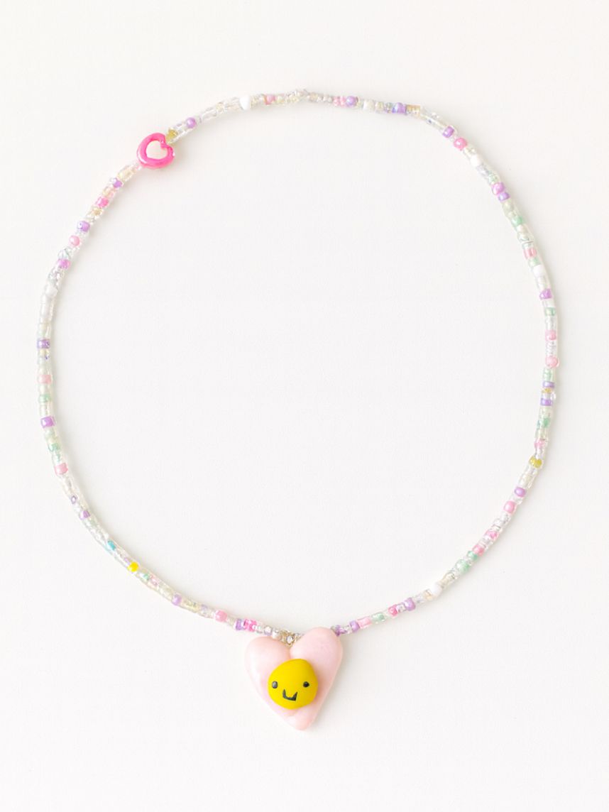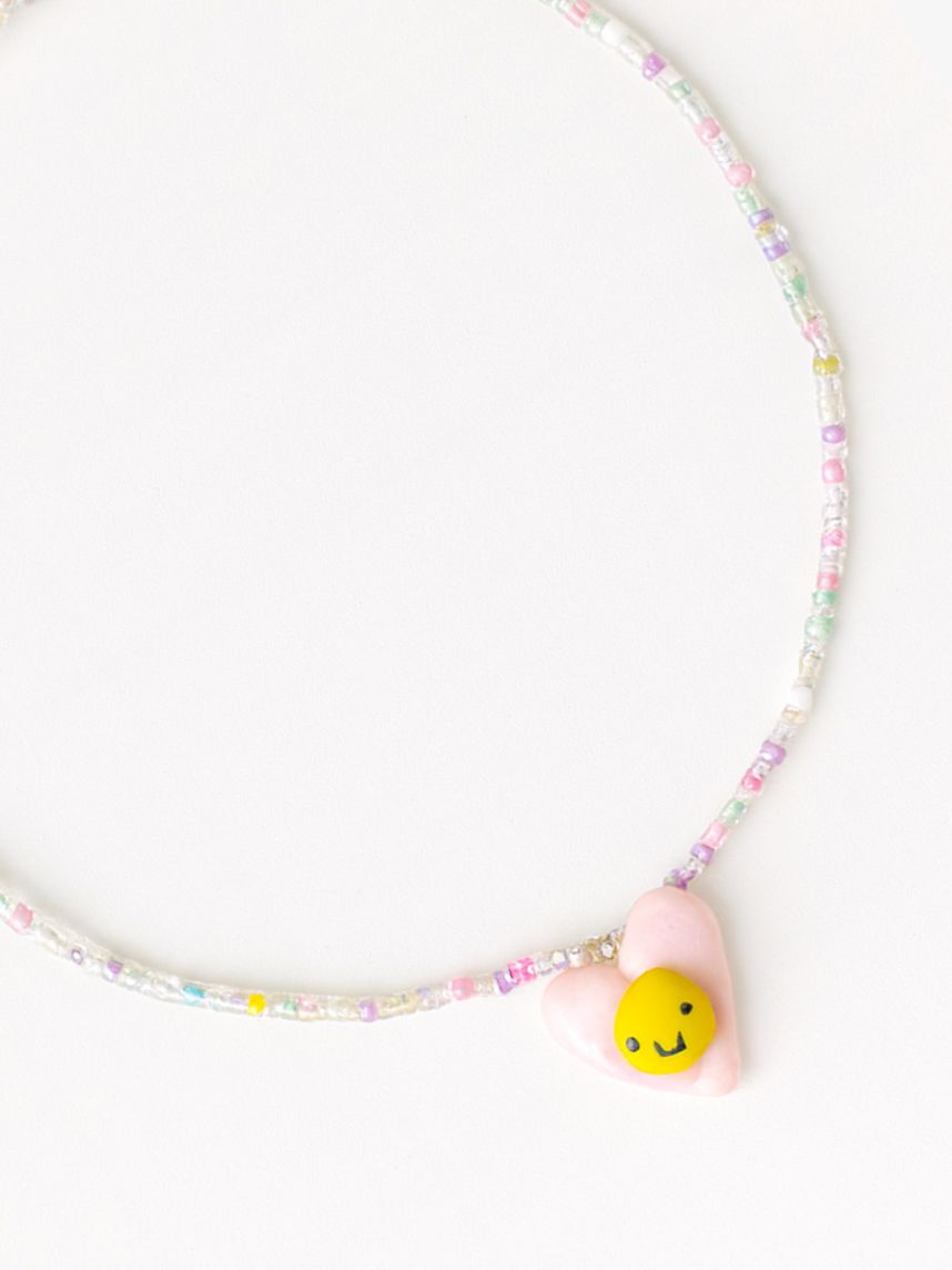 Чокер ручной работы с сердечком «Смайлик», полимерная глина, бисер