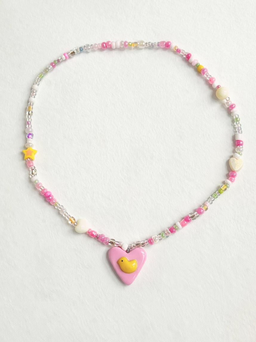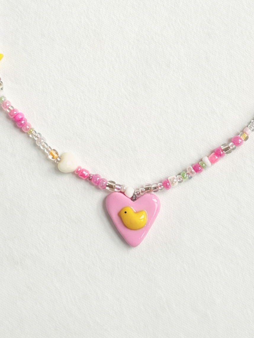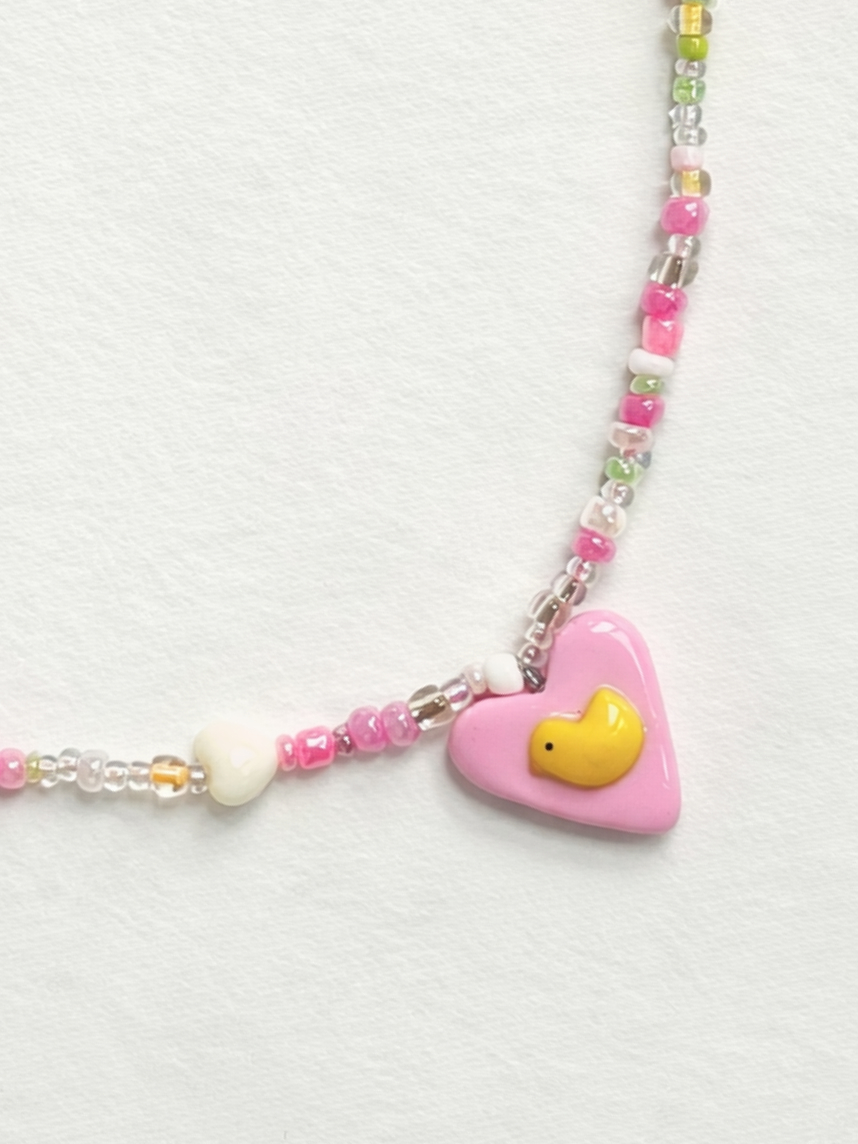 Чокер ручной работы Радость Рядом с сердечком «Цыплёнок», полимерная глина, бисер