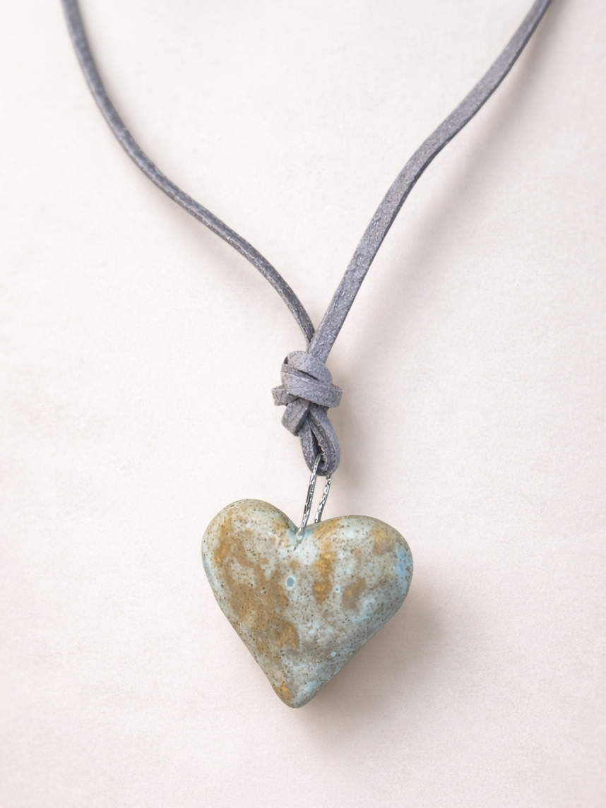 Чокер ручной работы «Сердце» на замшевом шнурке, керамика
