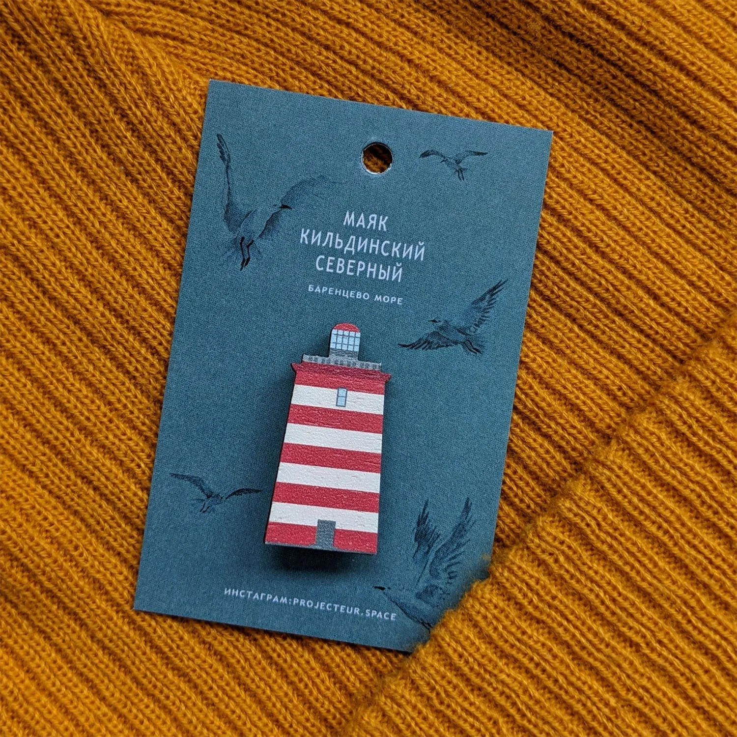 Кильдинский маяк. Деревянный значок от бренда МаякоМаньяки.