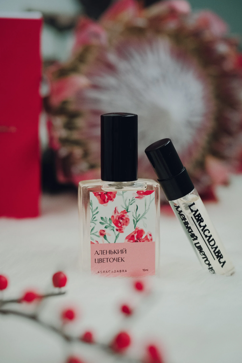 Считается, что одним из возможных «реальных» прообразов аленького цветочка мог быть шиповник — дикий, сияющий, знакомый каждому, кто хоть раз бродил по нашим лесам. Его свежая, прозрачная нота с лёгкой кислинкой стала сердцем аромата.