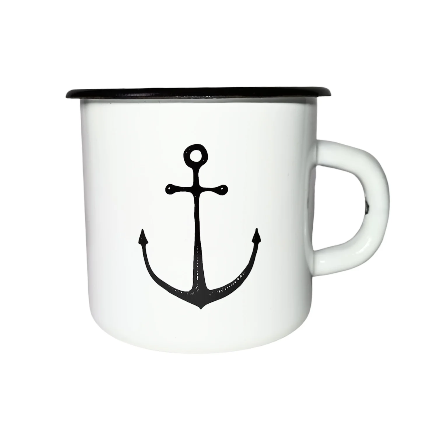 Эмалированная металлическая кружка белого цвета с рисунком «‎Якорь». Незаменимая вещь в походах и не только. Прекрасно впишется в интерьер кухни или пригодится на даче, а также станет отличным подарком любителю вылазок на природу.