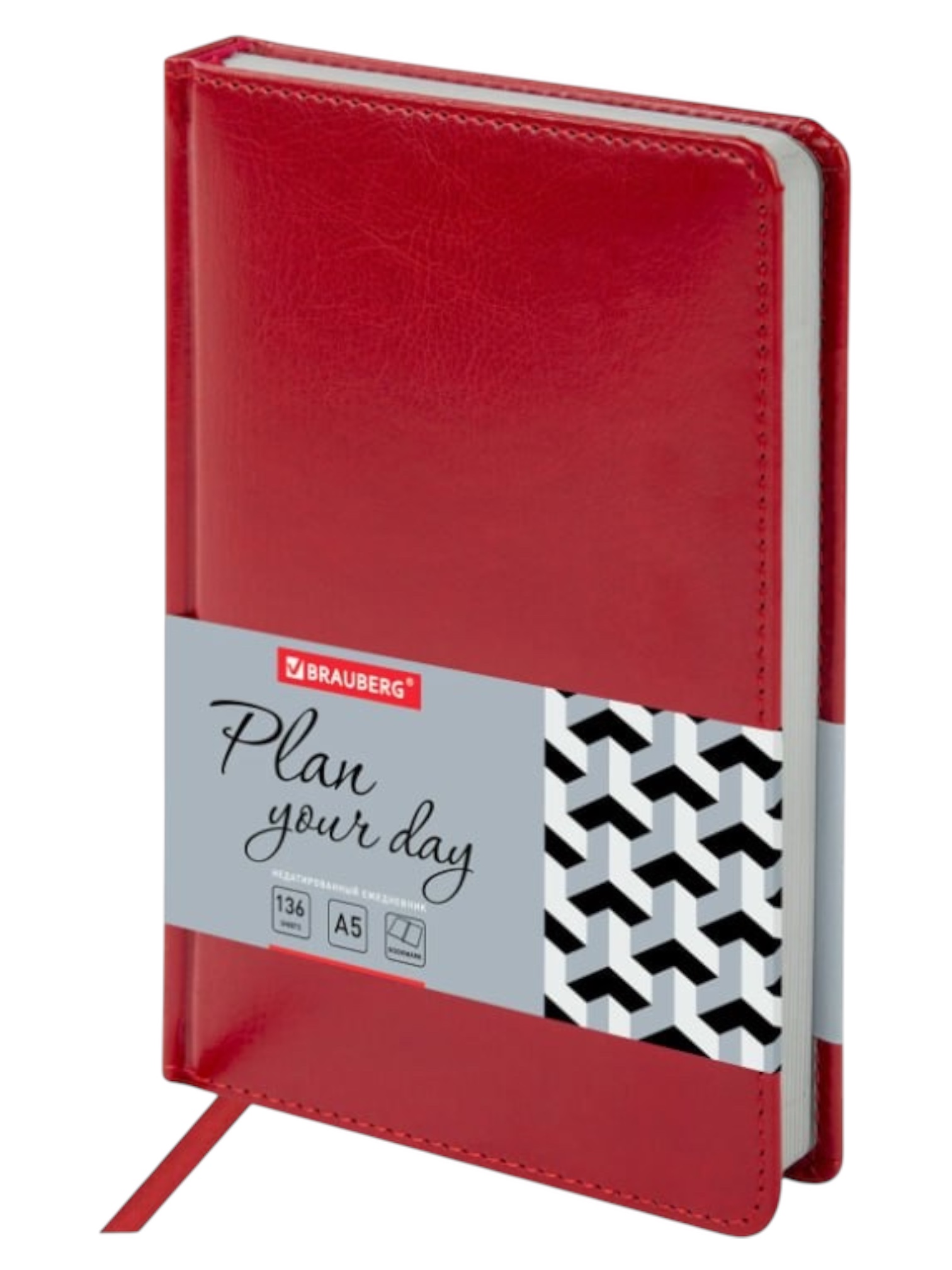 Ежедневник недатированный BRAUBERG «Rainbow», красный, А5