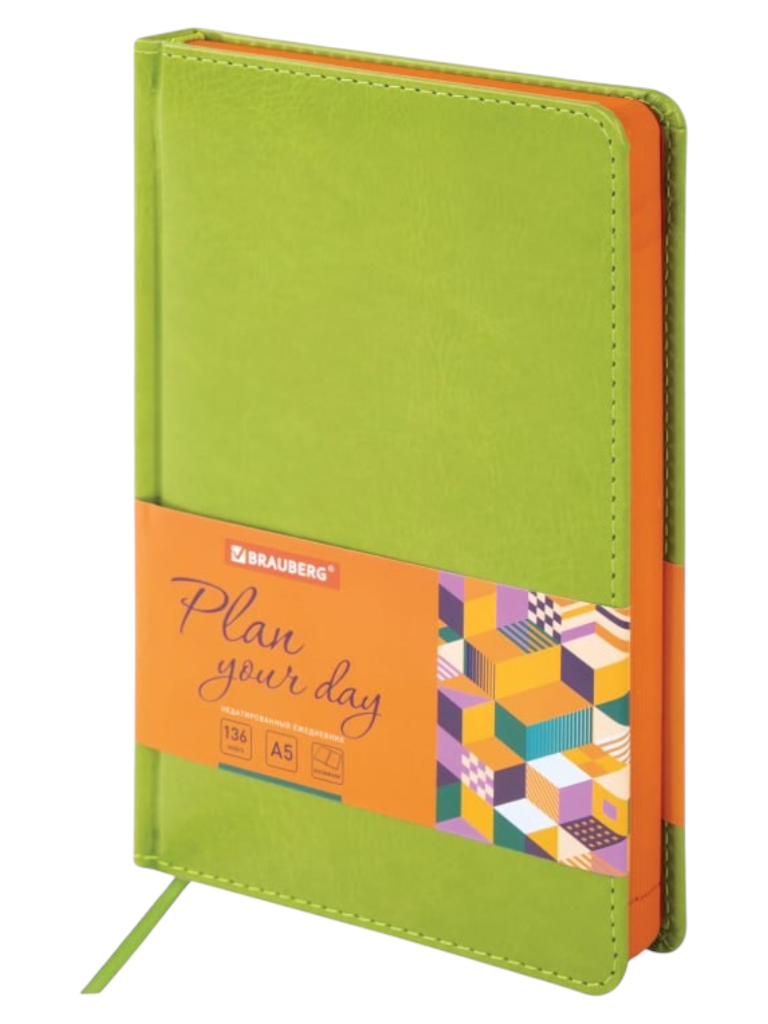 Ежедневник недатированный BRAUBERG «Rainbow», зелёный, А5