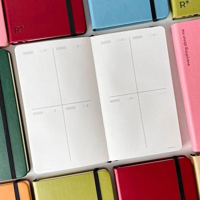 Еженедельник включает в себя список желаний, планы на год, колесо баланса списков книг, фильмов и интересных мест, а также планирование месяцев в расширенном формате с трекером привычек и планирование недель. Недельные развороты можно располагать в любом порядке.