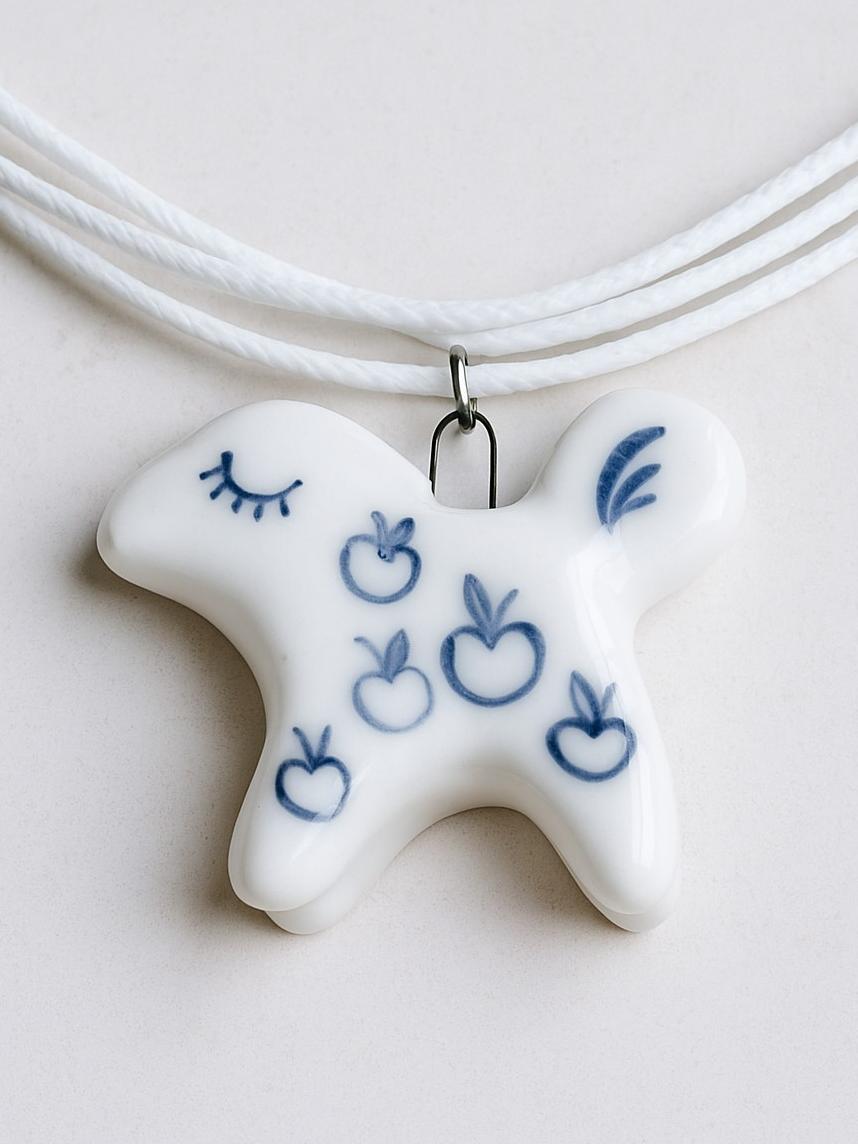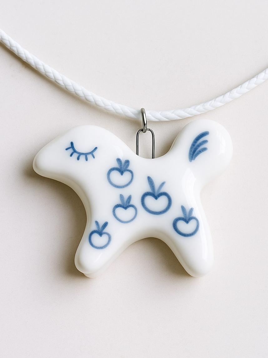 Фарфоровая подвеска ручной работы «Лошадка с яблоками».
