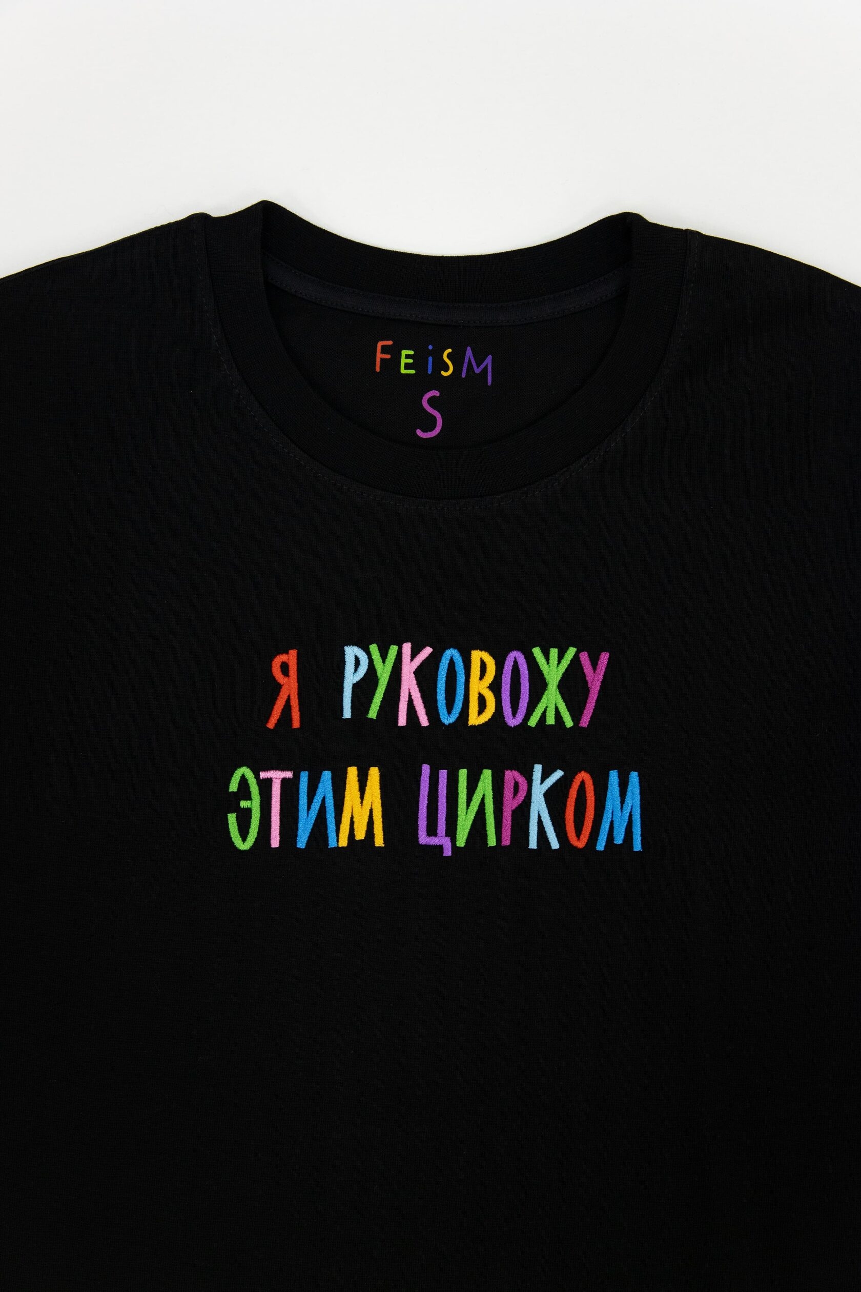 Футболка оверсайз с надписью «Я руковожу этим цирком» от бренда Feism.