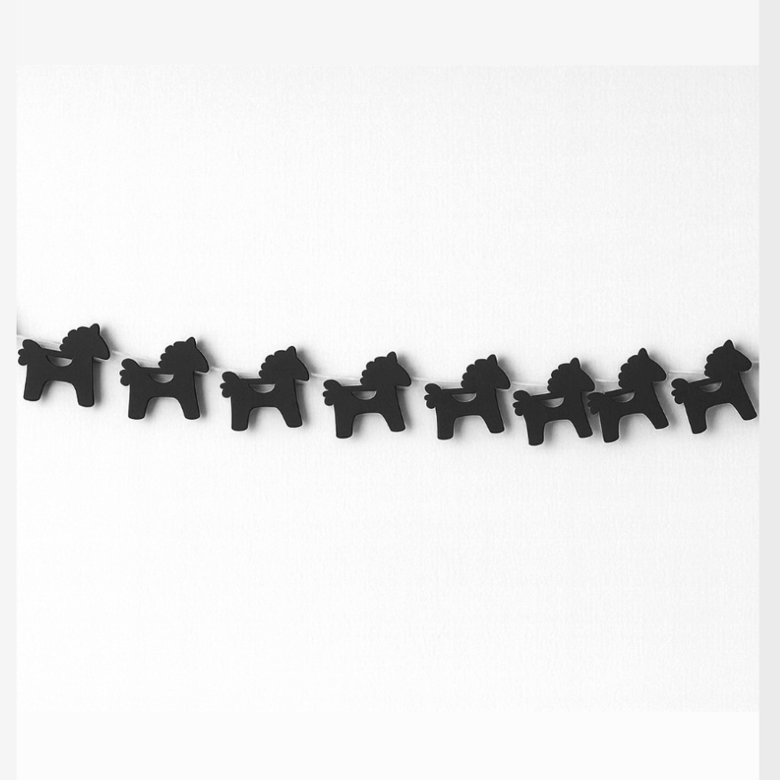 Гирлянда из бумажных лошадок черного цвета. Символ Нового года 2026.