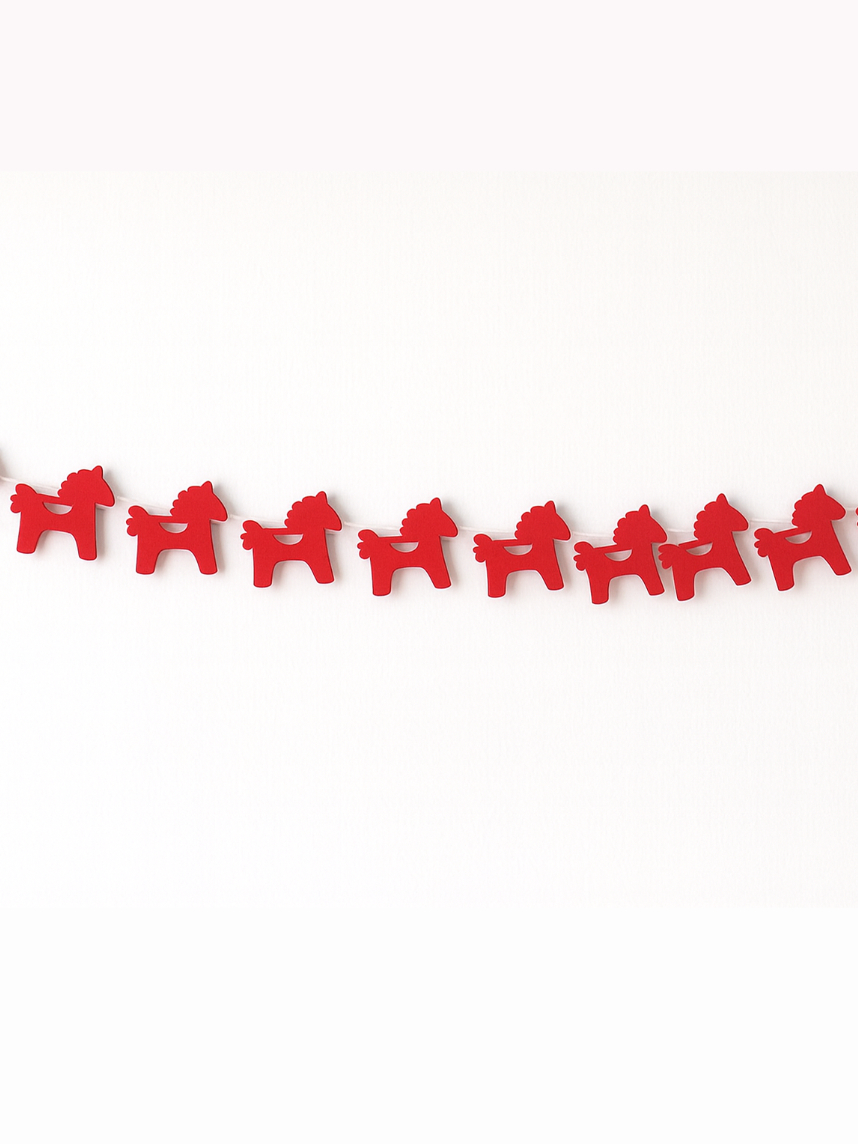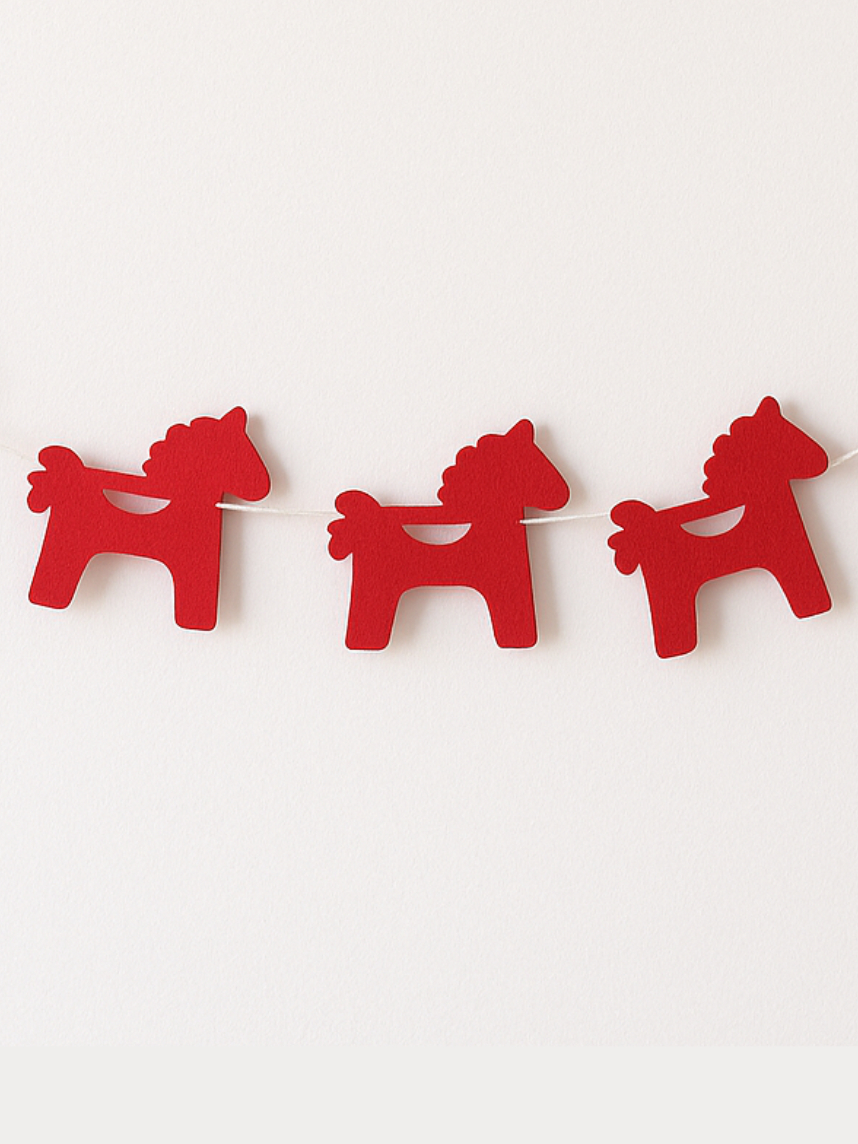 Гирлянда из бумажных лошадок красного цвета. Символ Нового года 2026.