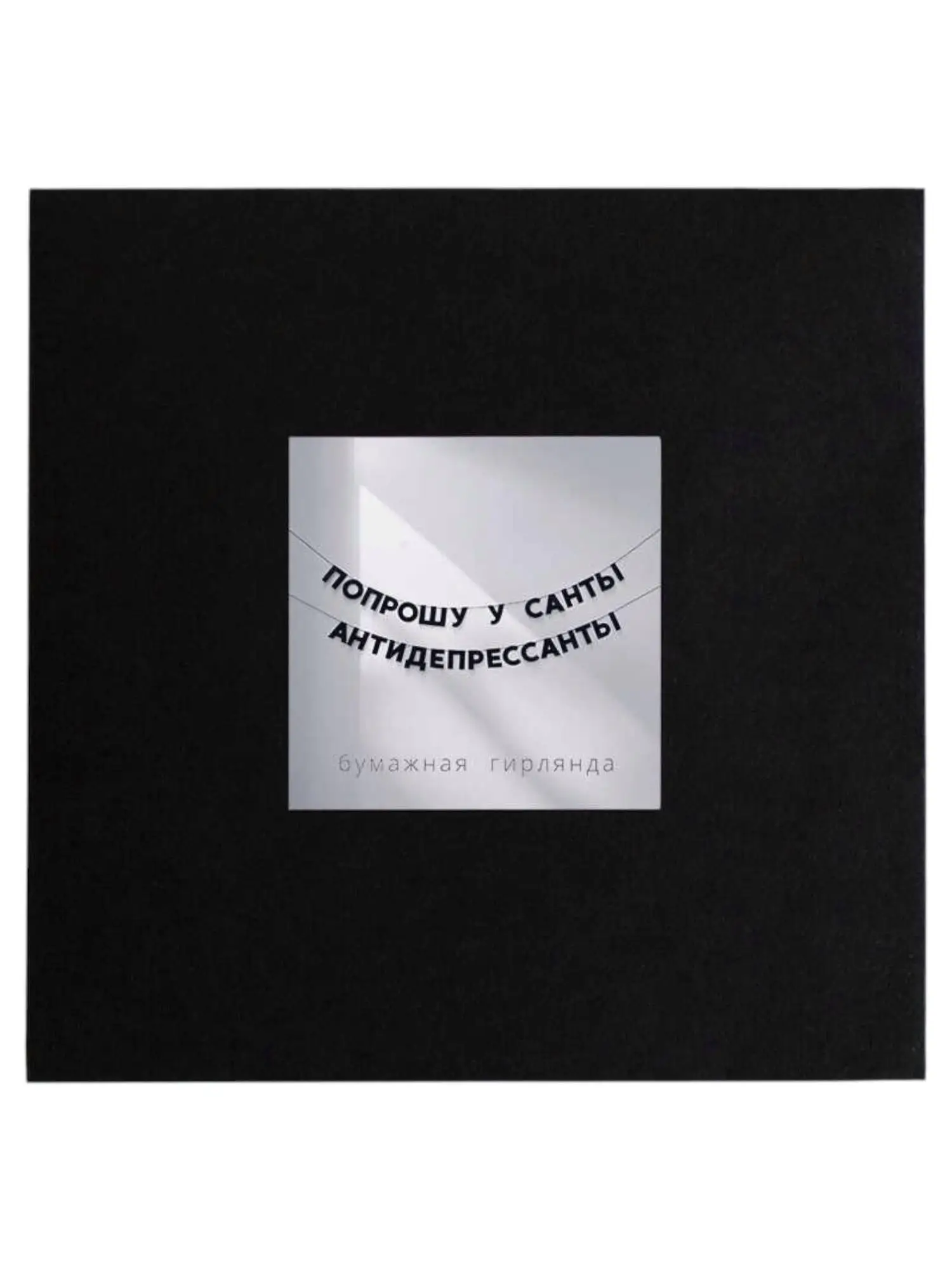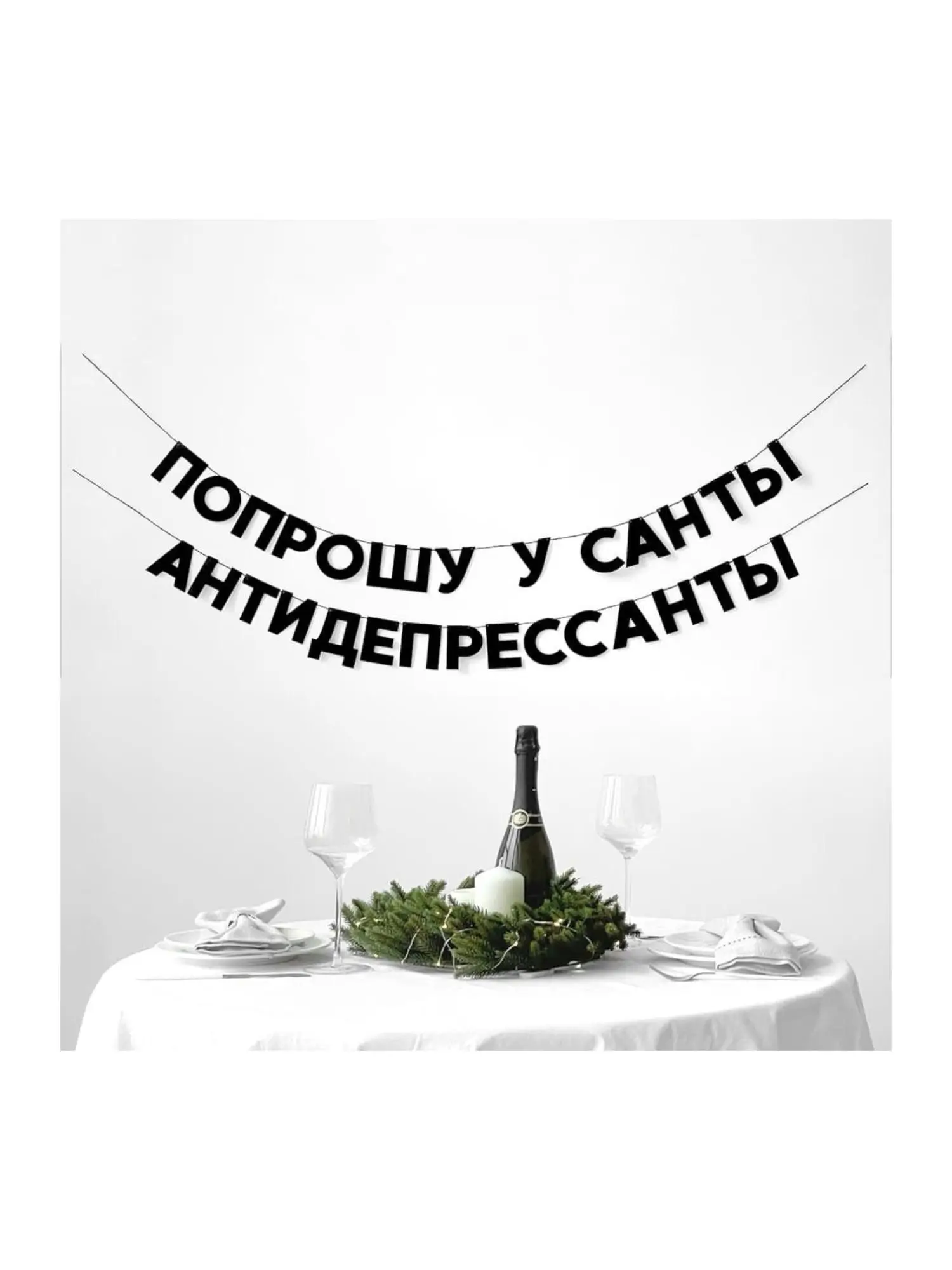 Гирлянда из букв «ПОПРОШУ У САНТЫ АНТИДЕПРЕССАНТЫ» от Tak.sebe.prazdnik станет стильным и уникальным украшением вашего дома или рабочего пространства. Изготовленная из прочной черной бумаги, она предназначена для создания праздничной и уютной атмосферы. Легко крепится благодаря удобным креплениям. Закажите сейчас и обновите свой интерьер с гирляндой Tak.sebe.prazdnik!