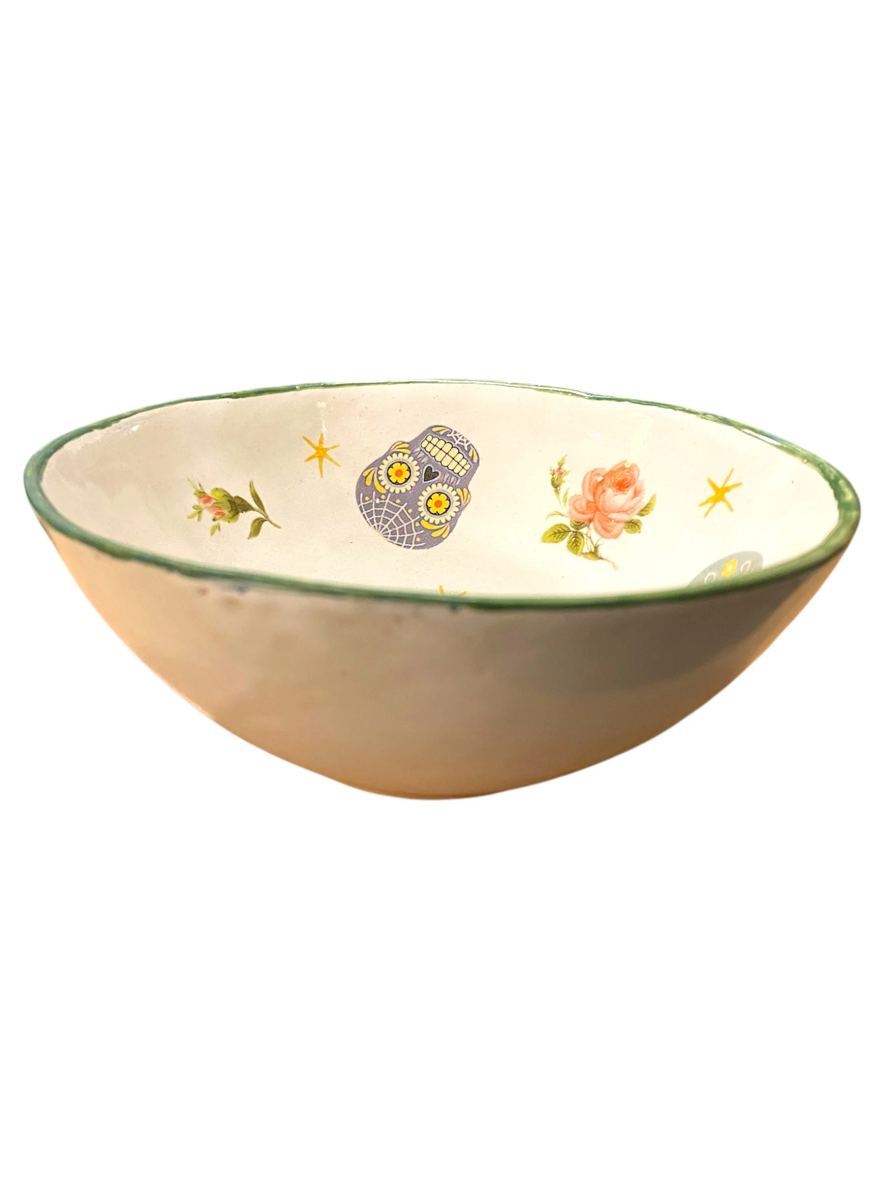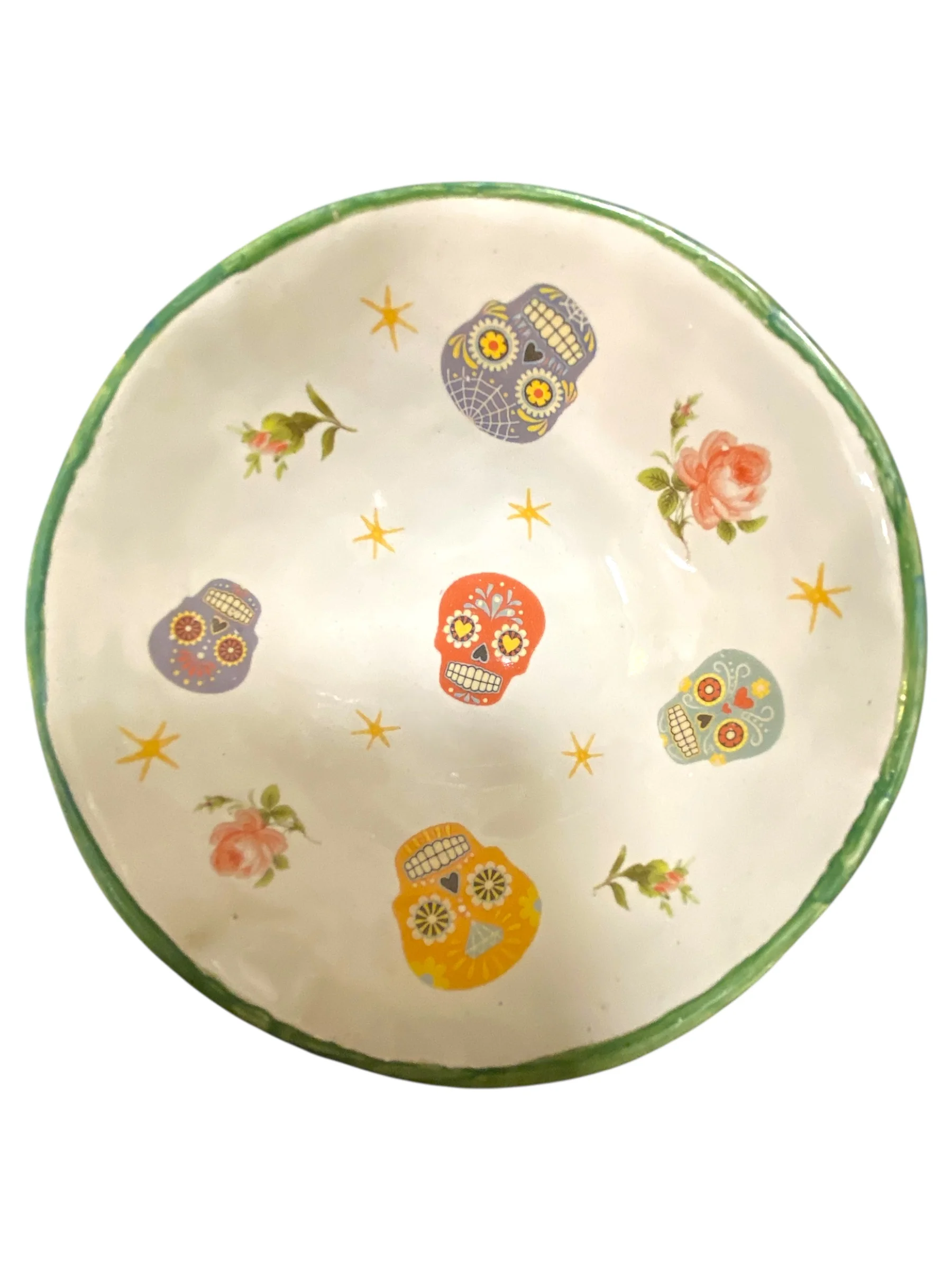Глубокая тарелка ручной работы Керумбия «Черепа», зеленая, керамика, 15 см