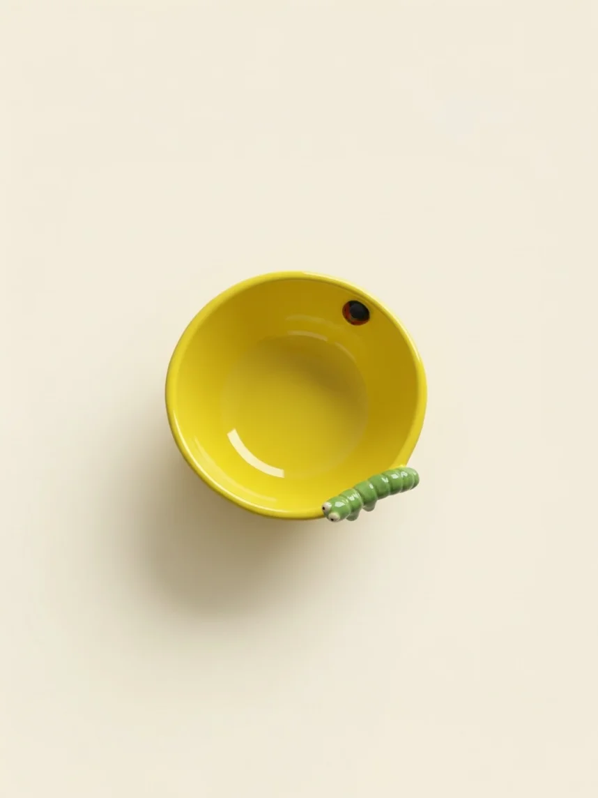 Глубокая тарелка ручной работы Emotion ceramics «Гусеница», желтая, керамика, 15 см