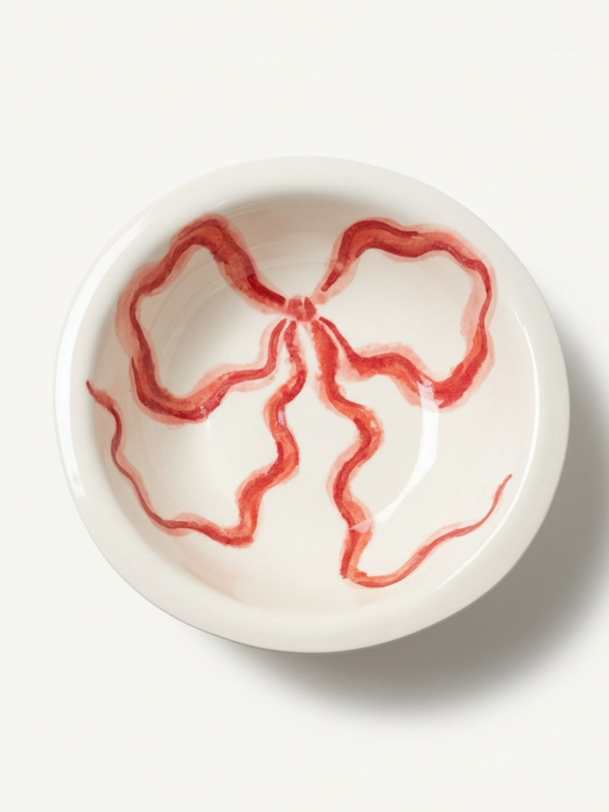 Глубокая керамическая тарелка Yellowscoop «Бантик», диаметр 18 см, выполнена вручную из высококачественной глины.